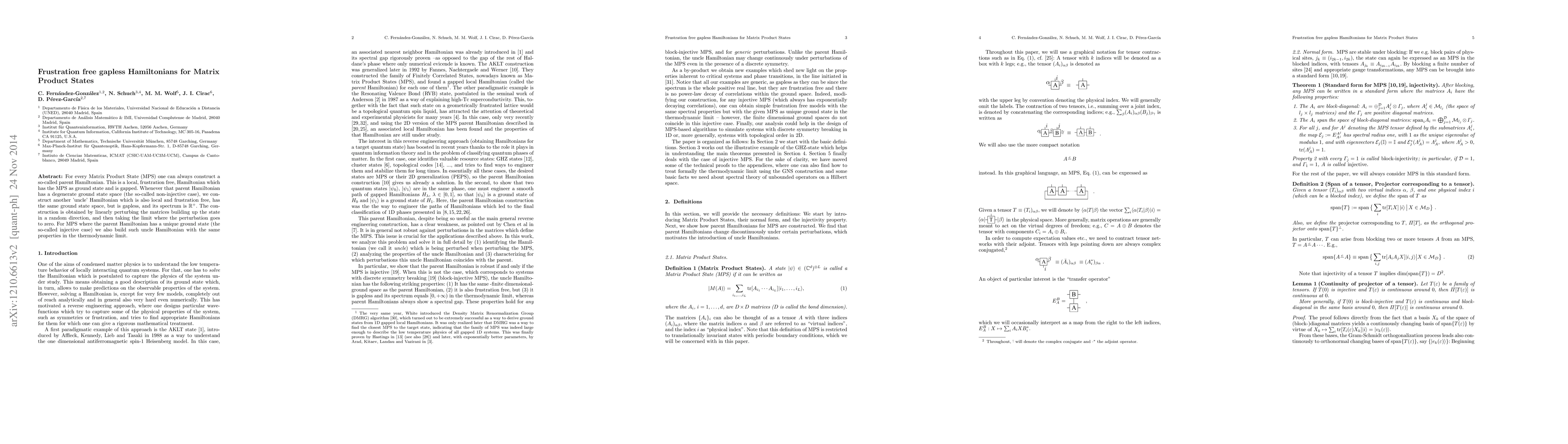 This paper constructs frustration-free gapless Hamiltonians, termed "uncle" Hamiltonians, for Matrix Product States (MPS) that have degenerate ground states. It also extends this construction to injective MPS in the thermodynamic limit, providing a method to create gapless Hamiltonians by perturbing the MPS matrices.