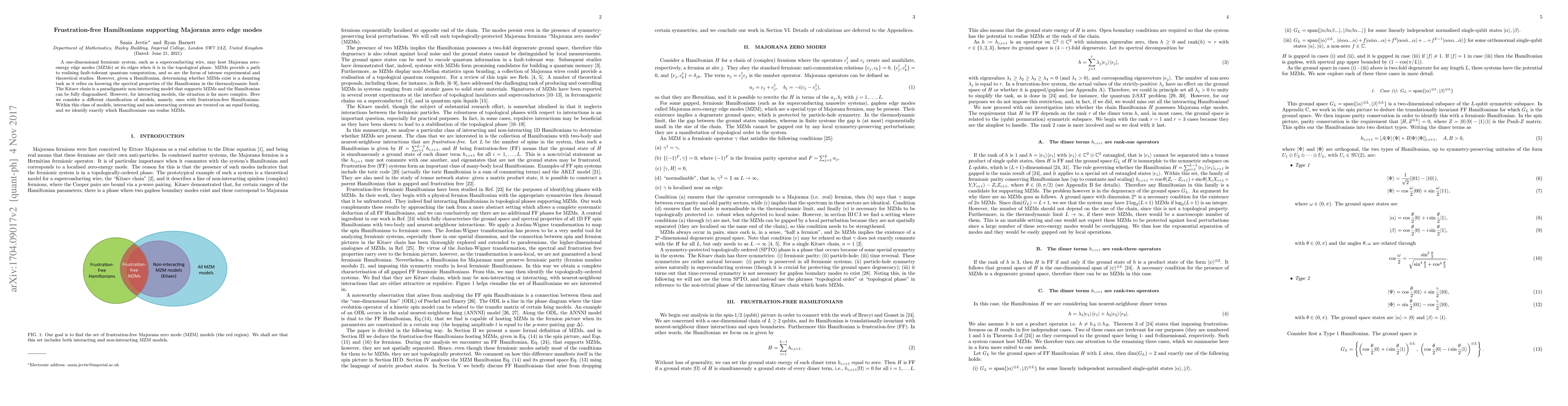 A one-dimensional fermionic system, such as a superconducting wire, may host Majorana zero-energy edge modes (MZMs) at its edges when it is in the topological phase. MZMs provide a path to realising fault-tolerant quantum computation, and so are the focus of intense experimental and theoretical studies. However, given a Hamiltonian, determining whether MZMs exist is a daunting task as it relies on knowing the spectral properties of the Hamiltonian in the thermodynamic limit. The Kitaev chain is a paradigmatic non-interacting model that supports MZMs and the Hamiltonian can be fully diagonalised. However, for interacting models, the situation is far more complex. Here we consider a different classification of models, namely, ones with frustration-free Hamiltonians. Within this class of models, interacting and non-interacting systems are treated on an equal footing, and we identify exactly which Hamiltonians can realise MZMs.