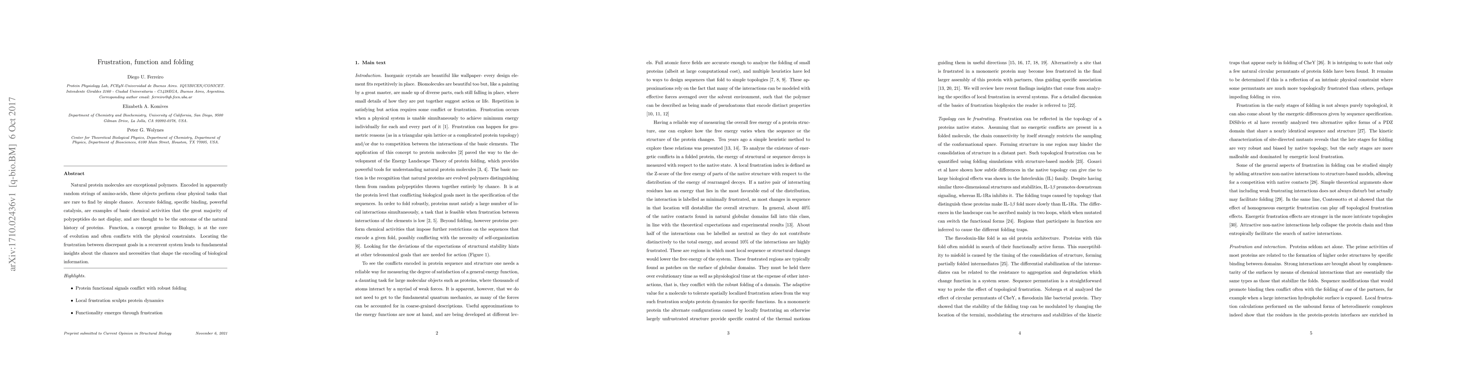 The paper explores the intricate relationship between protein function and folding, highlighting that protein molecules, encoded by seemingly random amino-acid sequences, perform specific tasks due to their natural evolution. It emphasizes that function, central to biology, often clashes with physical constraints, and identifying this 'frustration' offers key insights into the evolutionary processes shaping biological information encoding.