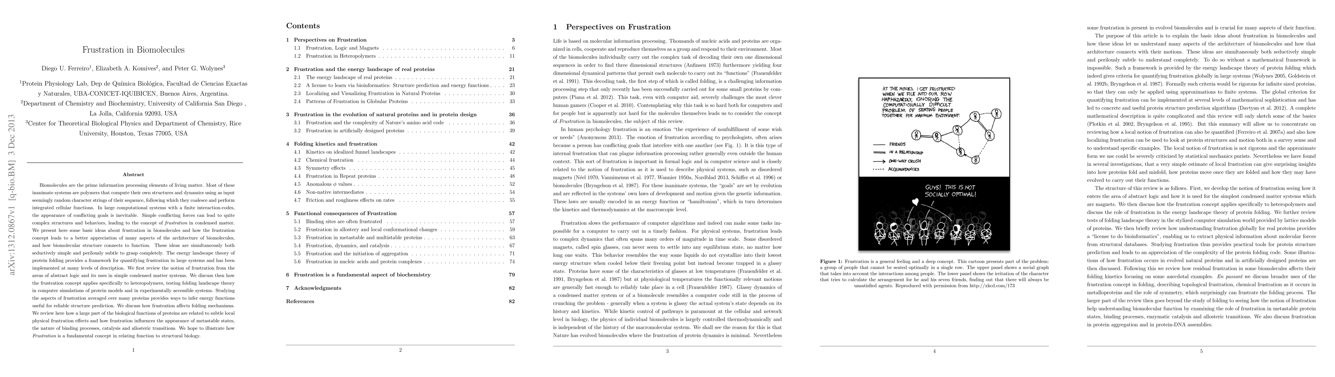 This paper explores the concept of frustration in biomolecules, emphasizing its role in understanding protein folding and function. It discusses how frustration arises from conflicting goals in large computational systems and how it influences protein structure, folding, binding, catalysis, and allosteric transitions, ultimately linking structural complexity to biological functions.