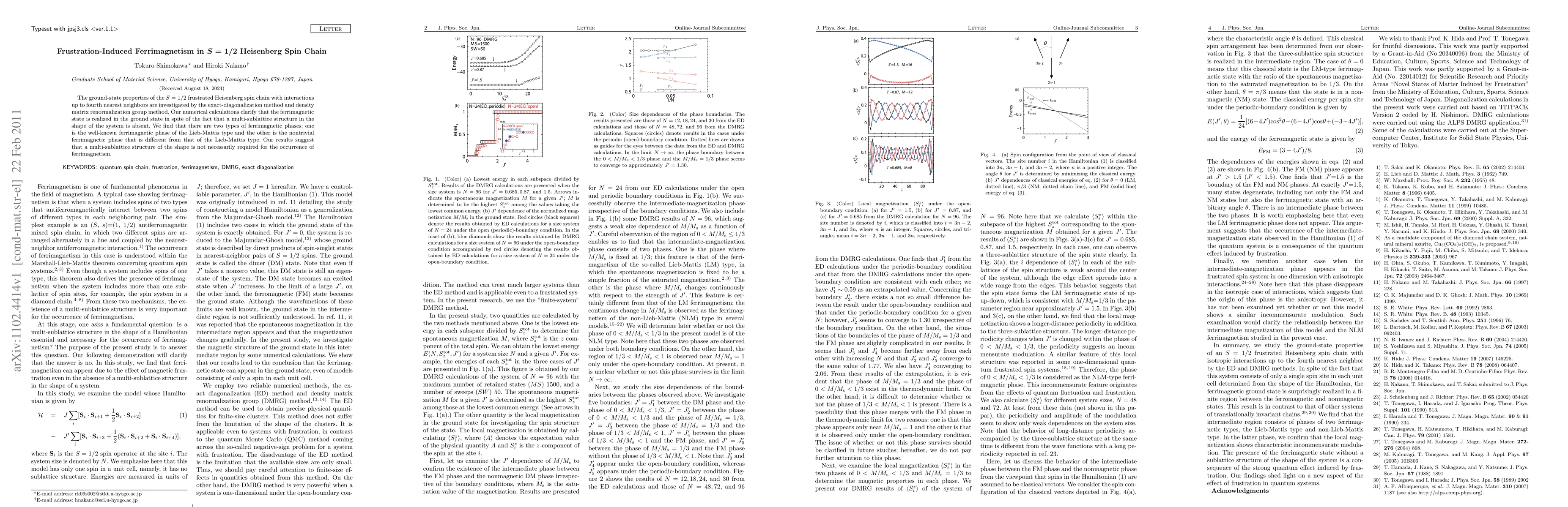 This research identifies two types of ferrimagnetic phases in S=1/2 frustrated Heisenberg spin chains using exact-diagonalization and density matrix renormalization group methods. Despite the absence of a multi-sublattice structure, ferrimagnetism is found, challenging the common belief that such a structure is necessary for ferrimagnetism.