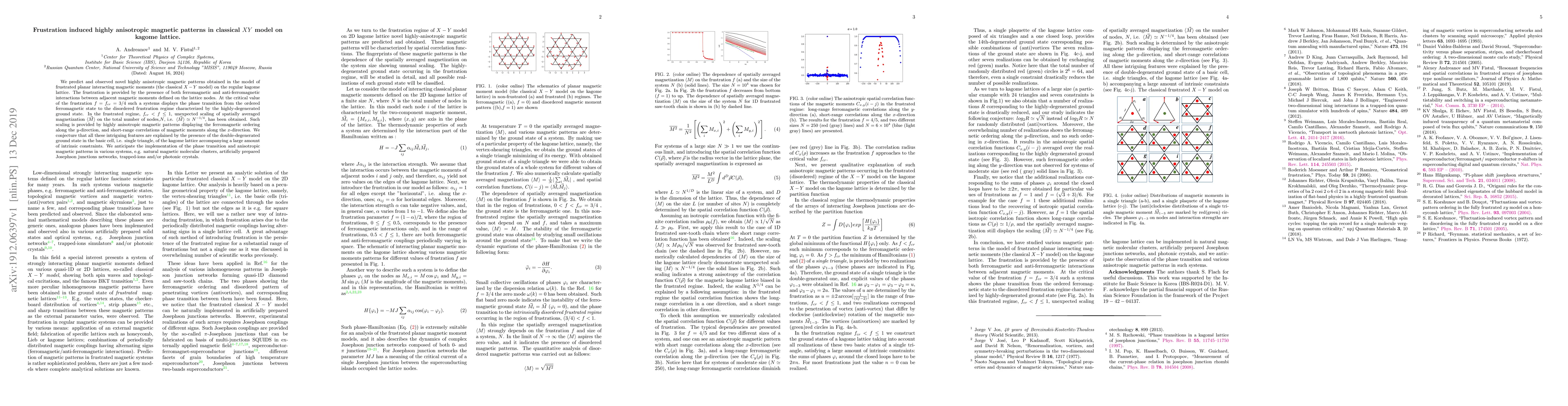 We predict and observed novel highly anisotropic magnetic patterns obtained in the model of frustrated planar interacting magnetic moments (the classical $X-Y$ model) on the regular kagome lattice. The frustration is provided by the presence of both ferromagnetic and anti-ferromagnetic interactions between adjacent magnetic moments defined on the lattice nodes. At the critical value of the frustration $f=f_{cr}=3/4$ such a systems displays the phase transition from the ordered ferromagnetic state to the disordered frustration regime characterized by the highly-degenerated ground state. In the frustrated regime, $f_{cr}< f \leq 1$, unexpected scaling of spatially averaged magnetization $\langle \vec{M} \rangle $ on the total number of nodes,$N$, i.e. $\langle \vec{M} \rangle \simeq N^{-1/4}$, has been obtained. Such scaling is provided by highly anisotropic magnetic patterns displaying the ferromagnetic ordering along the $y$-direction, and short-range correlations of magnetic moments along the $x$-direction. We conjecture that all these intriguing features are explained by the presence of the double-degenerated ground state in the basic cell, i.e. single triangle, of the kagome lattice accompanying a large amount of intrinsic constraints. We anticipate the implementation of the phase transition and anisotropic magnetic patterns in various systems, e.g. natural magnetic molecular clusters, artificially prepared Josephson junctions networks, trapped-ions and/or photonic crystals.
