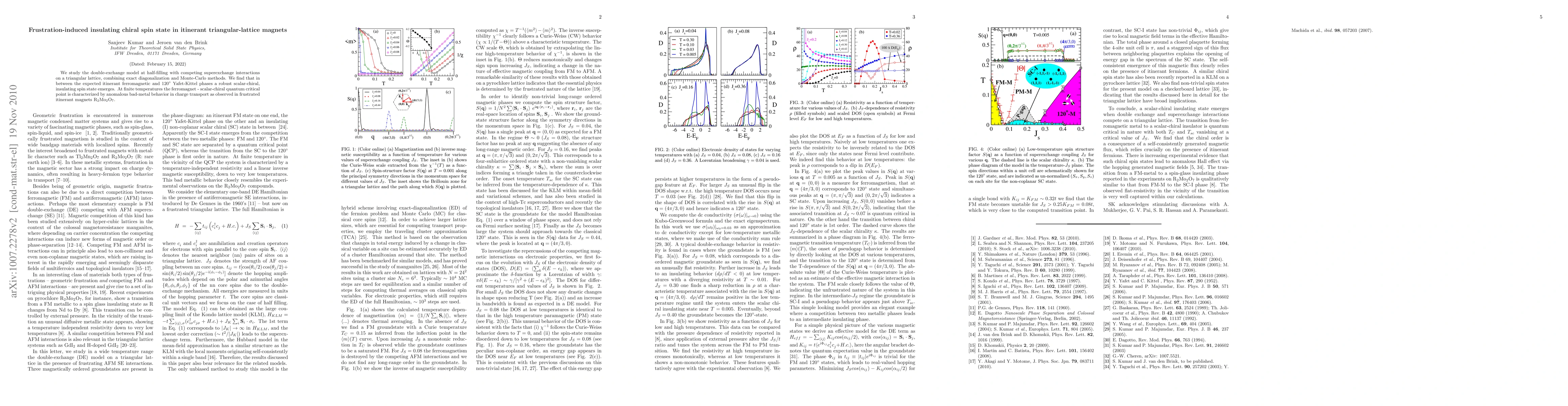 This research identifies a robust scalar-chiral insulating spin state in triangular-lattice magnets induced by frustration, emerging between itinerant ferromagnetic and $120^{\circ}$ Yafet-Kittel phases. The study reveals anomalous bad-metal behavior in charge transport near the ferromagnet-scalar-chiral quantum critical point, akin to observations in frustrated itinerant magnets like R$_2$Mo$_{2}$O$_7$.