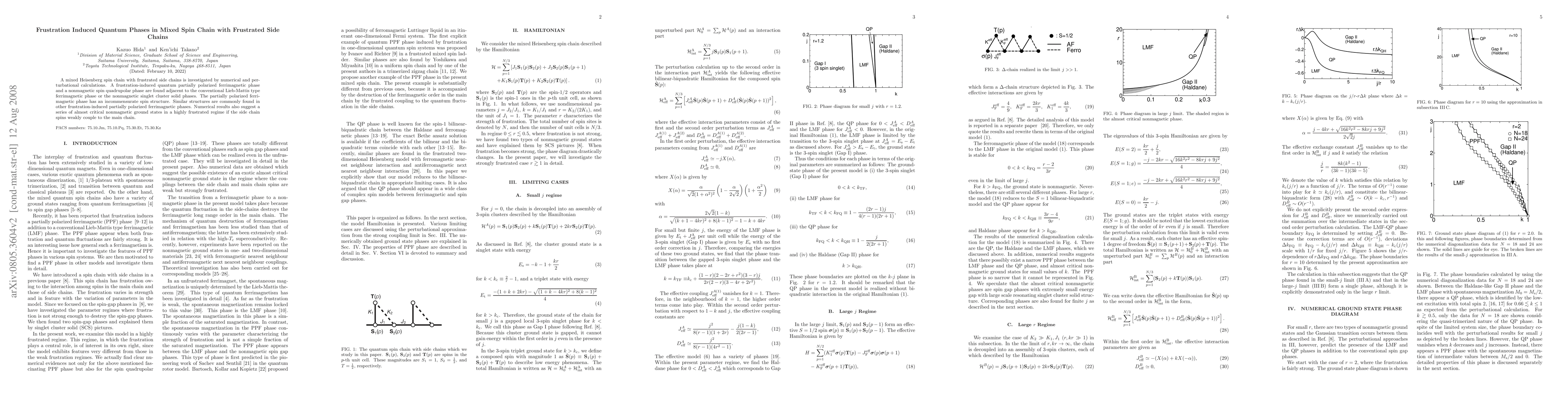 This study investigates a mixed Heisenberg spin chain with frustrated side chains, revealing frustration-induced quantum phases including a partially polarized ferrimagnetic phase and a nonmagnetic spin quadrupolar phase. Numerical results suggest a series of nearly critical nonmagnetic states in highly frustrated conditions.