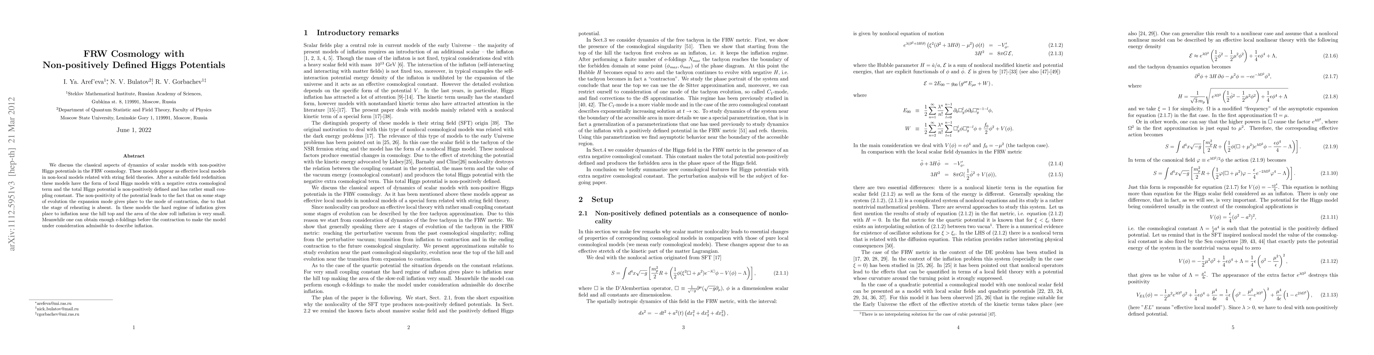 We discuss the classical aspects of dynamics of scalar models with non-positive Higgs potentials in the FRW cosmology. These models appear as effective local models in non-local models related with string field theories. After a suitable field redefinition these models have the form of local Higgs models with a negative extra cosmological term and the total Higgs potential is non-positively defined and has rather small coupling constant. The non-positivity of the potential leads to the fact that on some stage of evolution the expansion mode gives place to the mode of contraction, due to that the stage of reheating is absent. In these models the hard regime of inflation gives place to inflation near the hill top and the area of the slow roll inflation is very small. Meanwhile one can obtain enough e-foldings before the contraction to make the model under consideration admissible to describe inflation.
