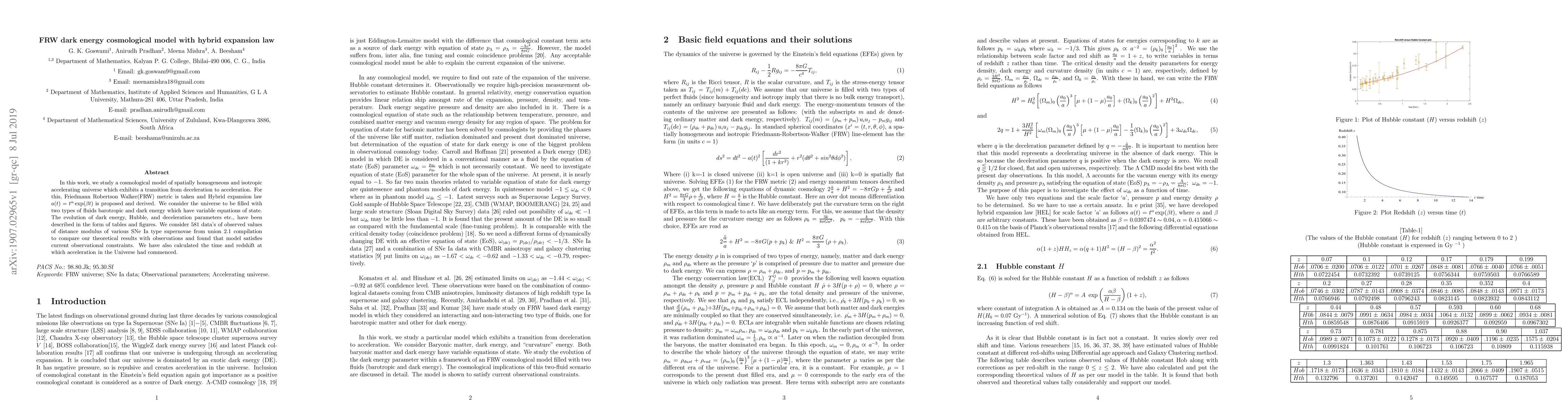 This research proposes a cosmological model using the Friedmann-Robertson-Walker (FRW) metric and a hybrid expansion law to describe an accelerating universe. The model, filled with barotropic fluid and dark energy, is compared to 581 observed SNe Ia distance modulus data from the Union 2.1 compilation, satisfying current observational constraints. It successfully identifies the time and redshift when the universe began to accelerate.