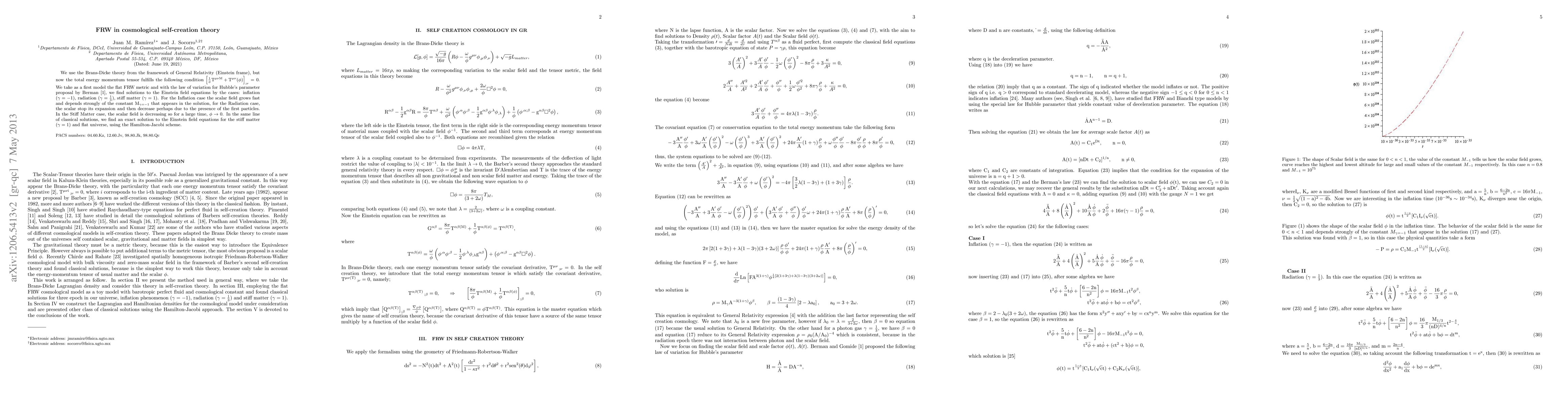 We use the Brans-Dicke theory from the framework of General Relativity (Einstein frame), but now the total energy momentum tensor fulfills the following condition $\rm <[\{1}{\phi}T^{\mu \nu M}+T^{\mu \nu}(\phi)>]_{;\nu}=0$. We take as a first model the flat FRW metric and with the law of variation for Hubble's parameter proposal by Berman \cite{Berman}, we find solutions to the Einstein field equations by the cases: inflation ($\gamma=-1$), radiation ($\gamma=\{1}{3}$), stiff matter ($\gamma=1$). For the Inflation case the scalar field grows fast and depends strongly of the constant $\rm M_{\gamma=-1}$ that appears in the solution, for the Radiation case, the scalar stop its expansion and then decrease perhaps due to the presence of the first particles. In the Stiff Matter case, the scalar field is decreasing so for a large time, $\phi\rightarrow0$. In the same line of classical solutions, we find an exact solution to the Einstein field equations for the stiff matter $(\gamma=1)$ and flat universe, using the Hamilton-Jacobi scheme.