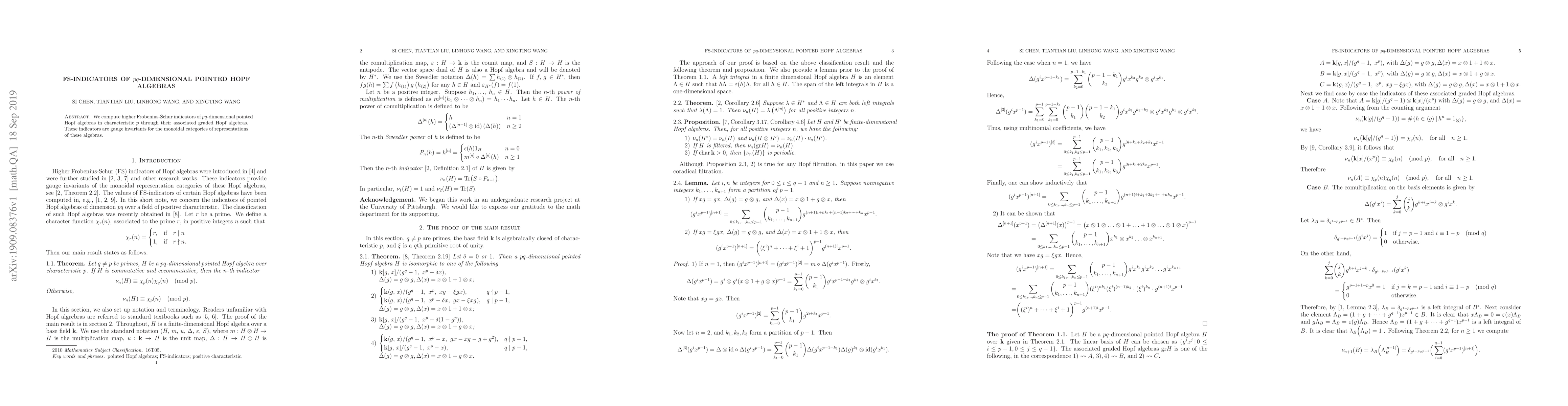We compute higher Frobenius-Schur indicators of pq-dimensional pointed Hopf algebras in characteristic p through their associated graded Hopf algebras. These indicators are gauge invariants for the monoidal categories of representations of these algebras.
