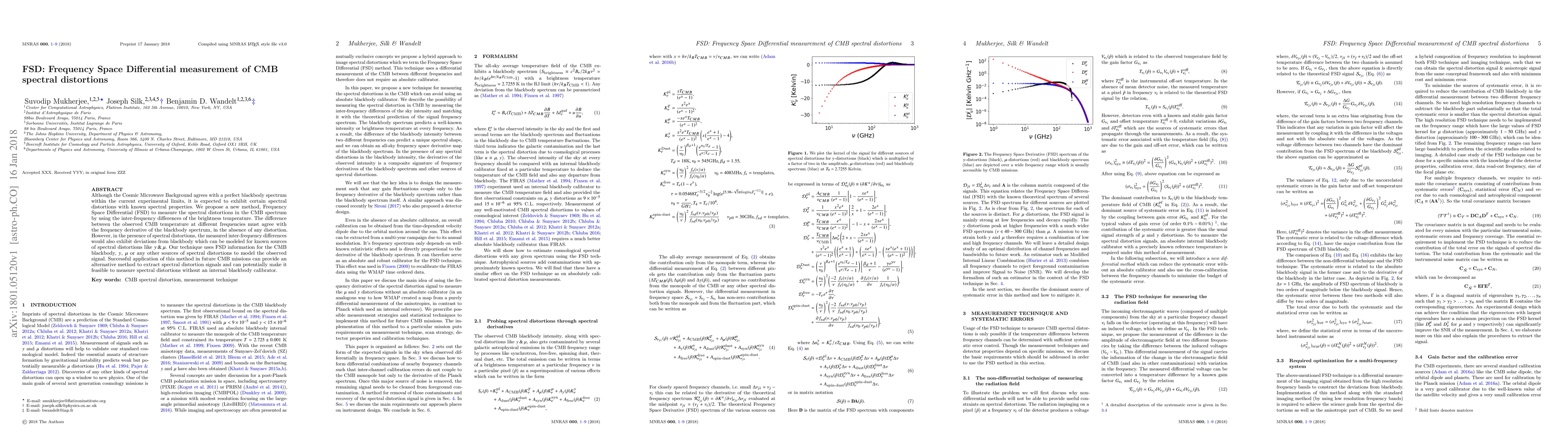 The paper proposes a new method called Frequency Space Differential (FSD) to measure spectral distortions in the Cosmic Microwave Background (CMB) by analyzing inter-frequency differences in brightness temperature. This method can potentially detect and model spectral distortions without requiring an internal blackbody calibrator, offering a new approach for future CMB missions.