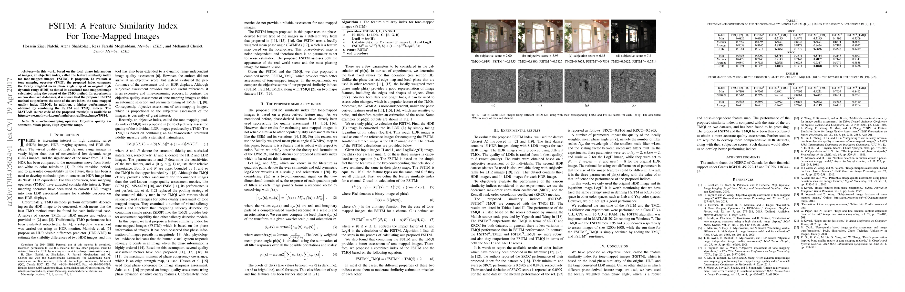 The paper proposes a new objective index, the Feature Similarity Index for Tone-Mapped Images (FSITM), which evaluates tone mapping operators by comparing local phase information between original high dynamic range and tone-mapped images. Experiments show FSITM outperforms the state-of-the-art TMQI index, and combining FSITM and TMQI further enhances performance.