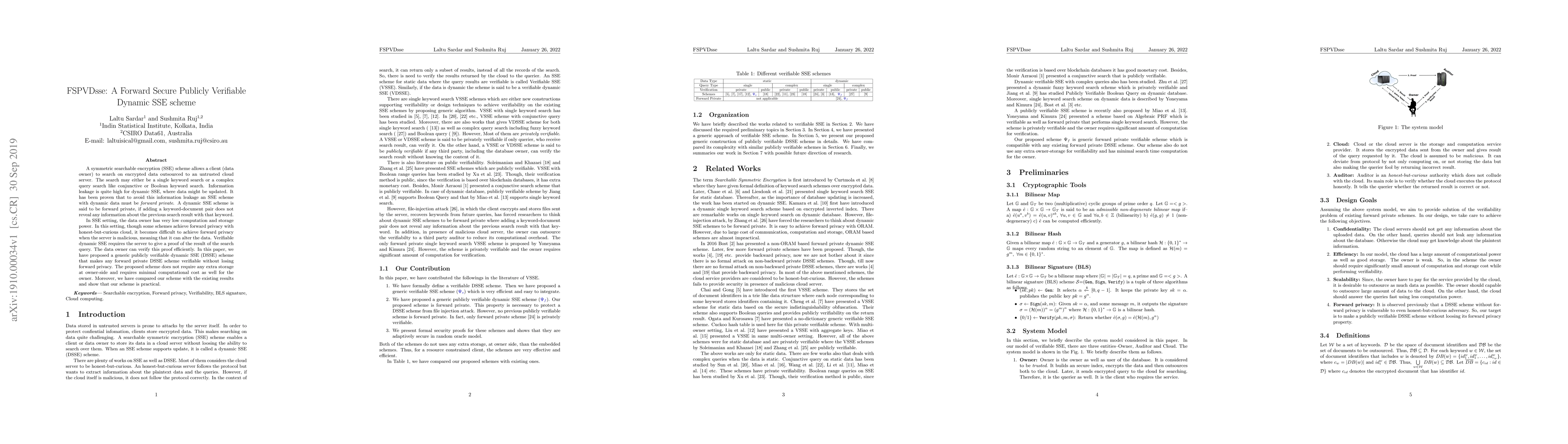 The paper proposes a new publicly verifiable dynamic searchable encryption (DSSE) scheme, FSPVDsse, that enhances forward privacy without requiring additional storage or significantly increasing computational costs for the data owner. The scheme ensures that any forward private DSSE can be made verifiable without compromising forward privacy, addressing the challenge of malicious cloud servers.