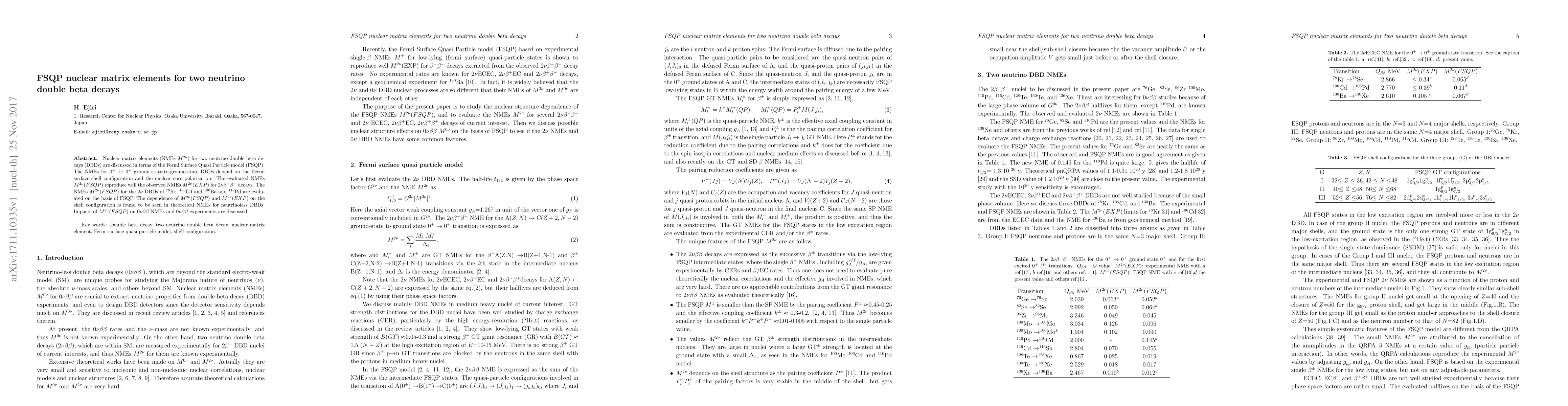 Researchers used the Fermi Surface Quasi-Particle Model to calculate nuclear matrix elements for two neutrino double beta decays, finding agreement with observed values and shell configuration dependence.