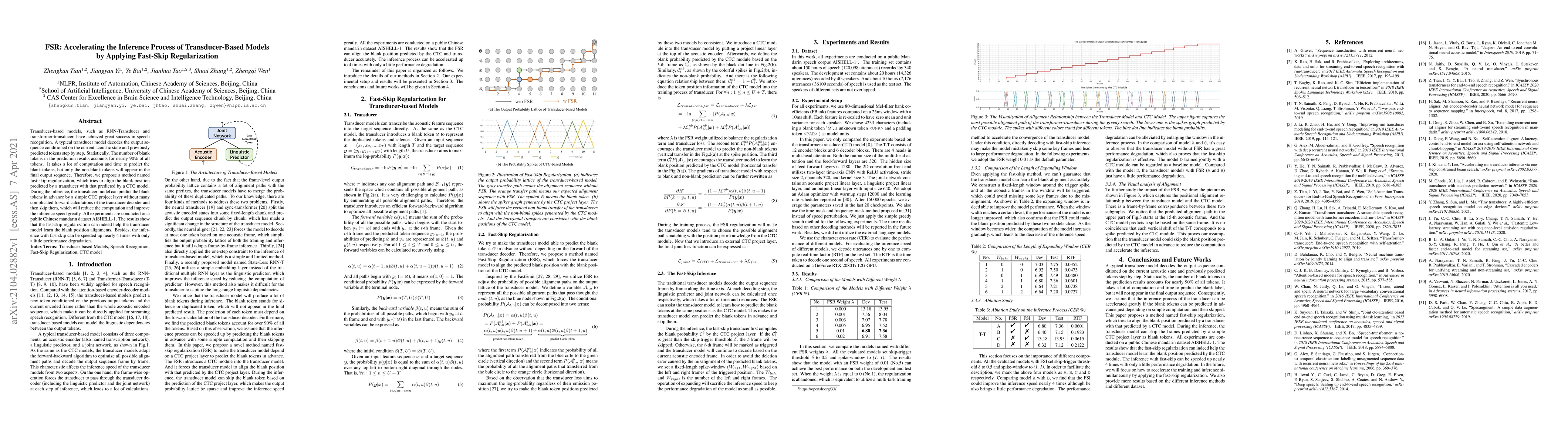 Transducer-based models, such as RNN-Transducer and transformer-transducer, have achieved great success in speech recognition. A typical transducer model decodes the output sequence conditioned on the current acoustic state and previously predicted tokens step by step. Statistically, The number of blank tokens in the prediction results accounts for nearly 90\% of all tokens. It takes a lot of computation and time to predict the blank tokens, but only the non-blank tokens will appear in the final output sequence. Therefore, we propose a method named fast-skip regularization, which tries to align the blank position predicted by a transducer with that predicted by a CTC model. During the inference, the transducer model can predict the blank tokens in advance by a simple CTC project layer without many complicated forward calculations of the transducer decoder and then skip them, which will reduce the computation and improve the inference speed greatly. All experiments are conducted on a public Chinese mandarin dataset AISHELL-1. The results show that the fast-skip regularization can indeed help the transducer model learn the blank position alignments. Besides, the inference with fast-skip can be speeded up nearly 4 times with only a little performance degradation.