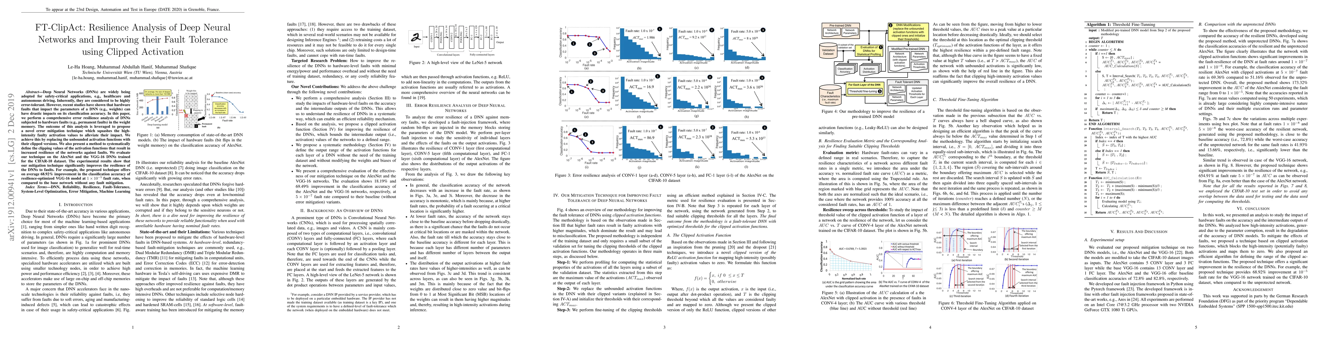 This paper investigates the resilience of Deep Neural Networks (DNNs) to hardware faults and proposes a novel technique using clipped activation functions to improve fault tolerance. Experimental results show significant improvements in classification accuracy, with a 68.92% increase for the VGG-16 model under a 1e-5 fault rate.