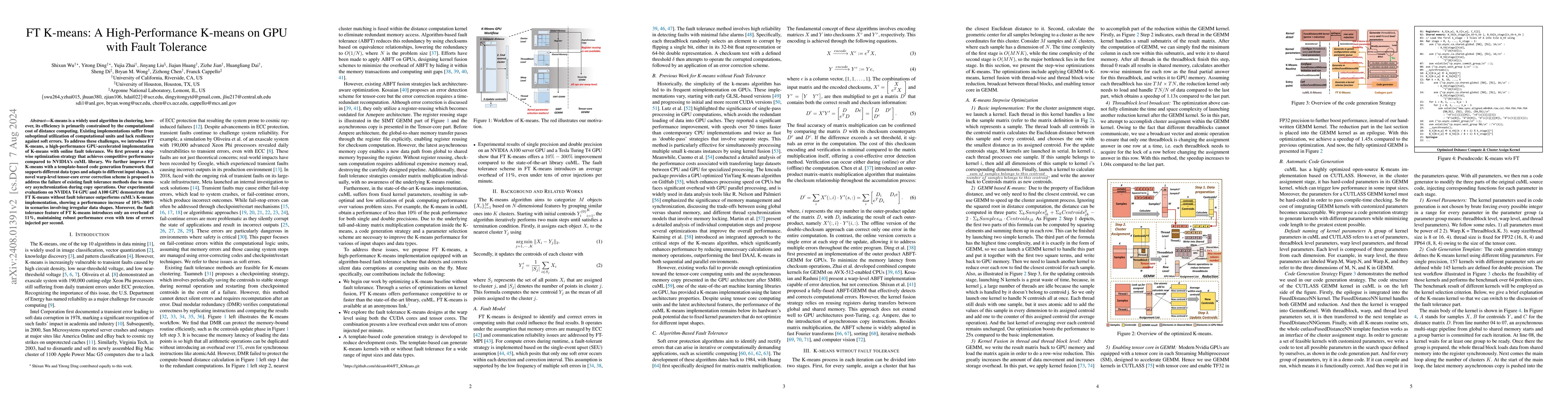 FT K-Means introduces a high-performance GPU-accelerated K-Means algorithm with fault tolerance, achieving 10%-300% performance gains over cuML’s implementation. The novel warp-level tensor-core error correction scheme maintains robust performance even with frequent soft errors.