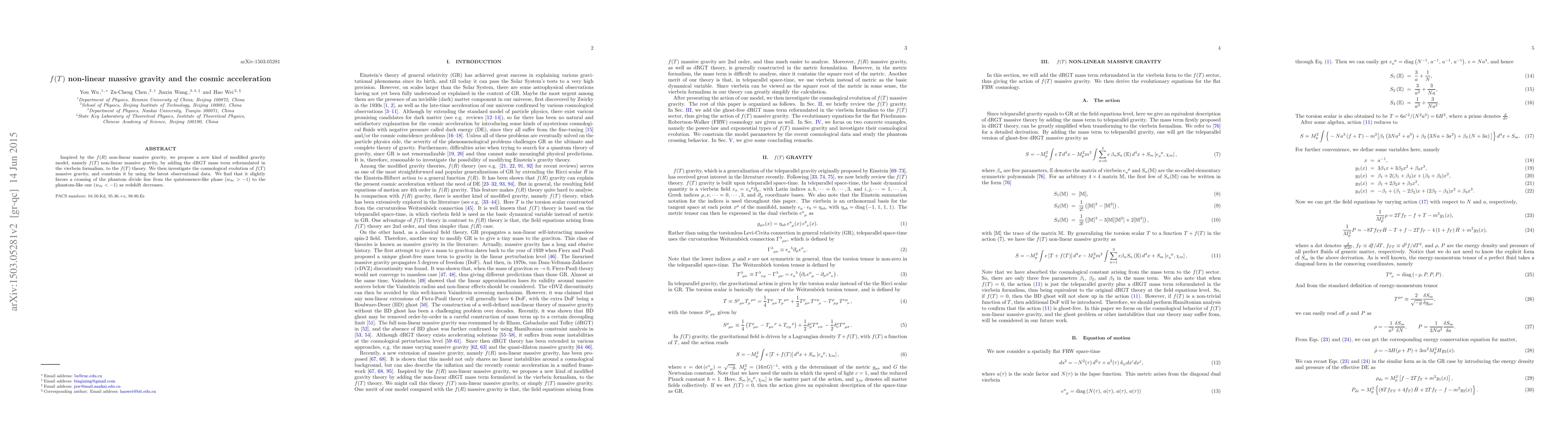 This paper proposes a modified $f(T)$ non-linear massive gravity model, incorporating the dRGT mass term in the vierbein formalism, and explores its cosmological evolution. The model is constrained by recent observational data, suggesting it may transition from quintessence to phantom-like dark energy as the universe evolves.