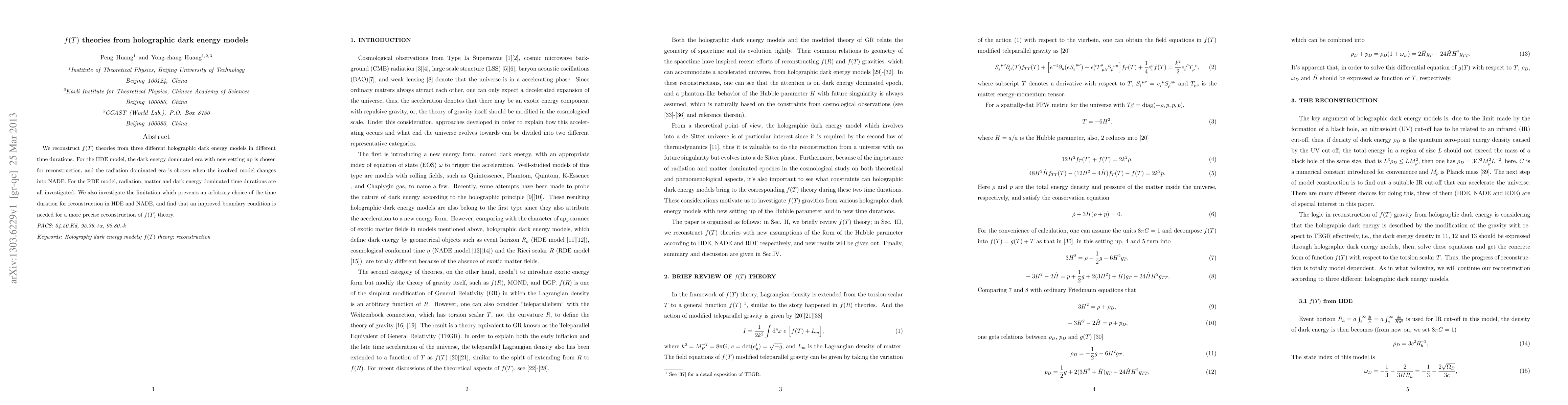 This research reconstructs $f(T)$ theories from holographic dark energy models, analyzing HDE, NADE, and RDE in specific time durations. It identifies limitations in reconstruction and proposes improved boundary conditions for precision.