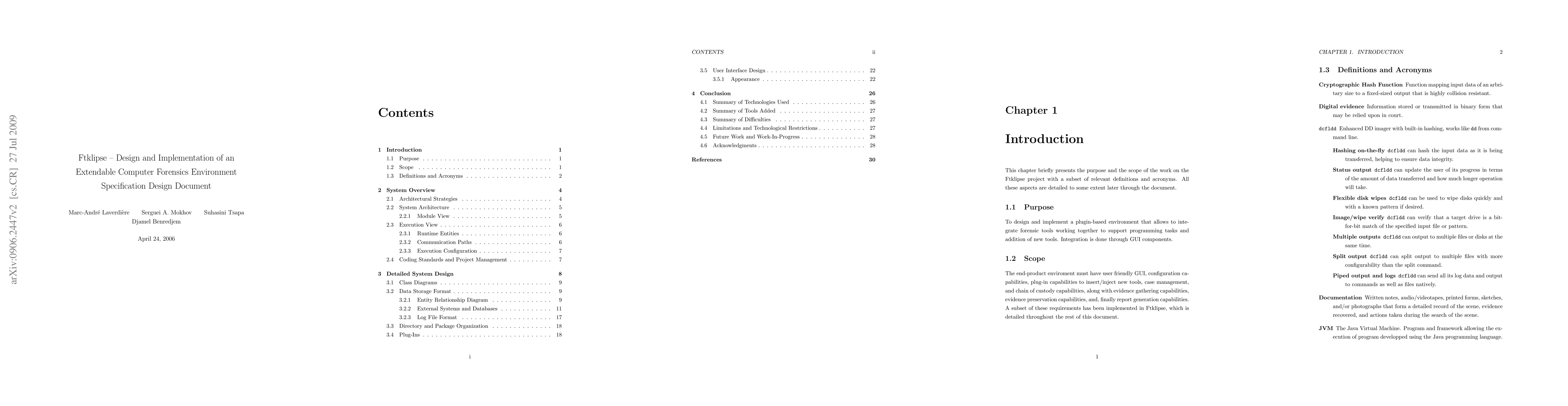 This paper presents the design and implementation of Ftklipse, a plugin-based computer forensics environment with a user-friendly GUI, enabling integration of various forensic tools, case management, and report generation capabilities. The project aims to support the addition of new tools and includes features for evidence gathering, preservation, and chain of custody.