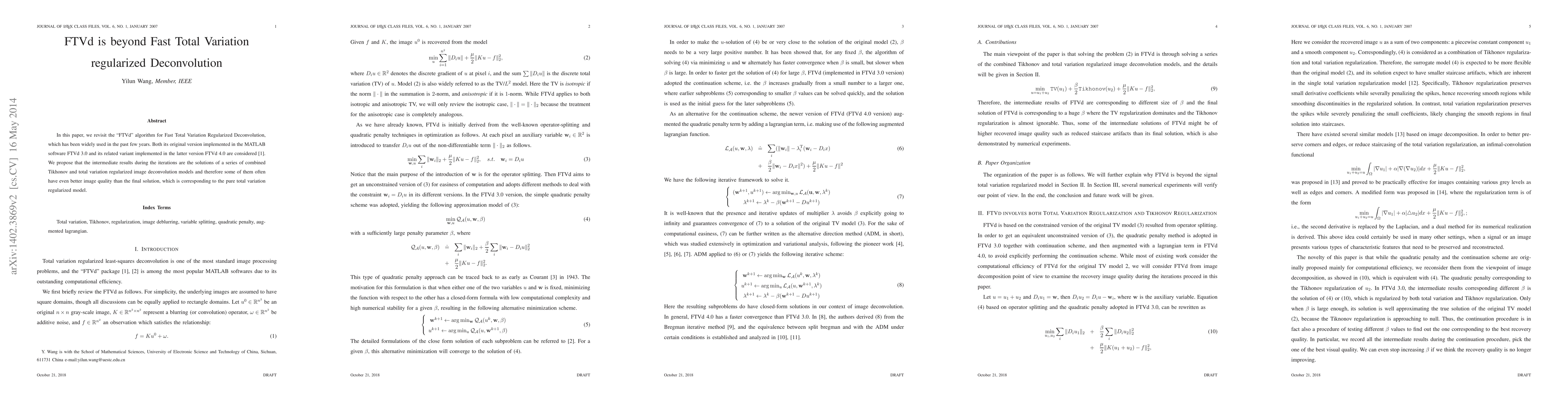 This paper revisits the FTVd algorithm for Fast Total Variation Regularized Deconvolution, proposing that intermediate results during iterations often yield better image quality than the final solution, which corresponds to the pure total variation model. The study considers both the original FTVd 3.0 and its variant FTVd 4.0.
