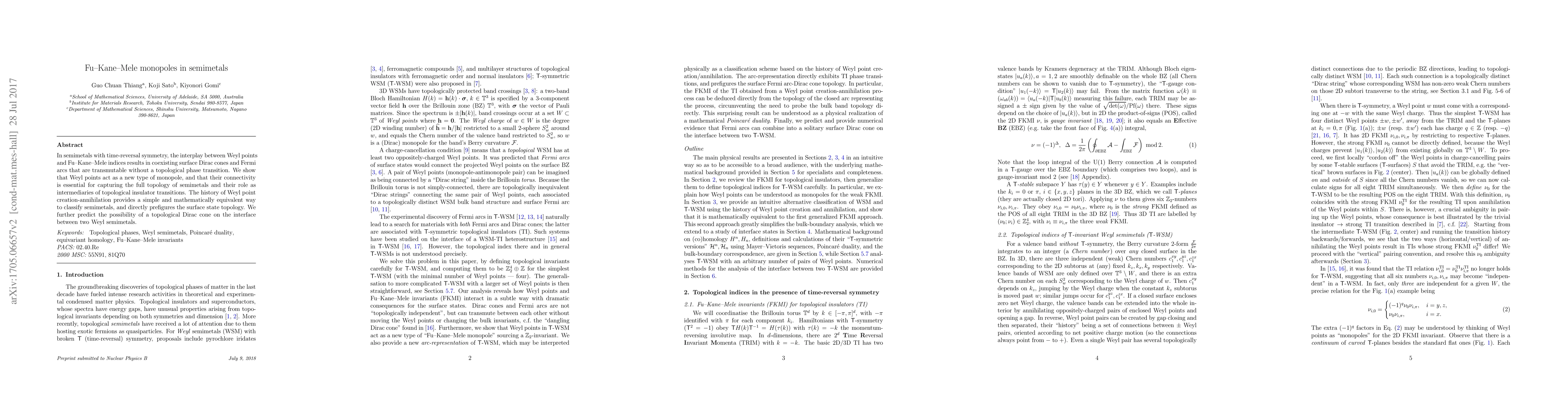 The paper explores the topological role of Weyl points in semimetals, demonstrating they act as monopoles that facilitate the coexistence of surface Dirac cones and Fermi arcs. The connectivity of Weyl points is crucial for classifying semimetals and predicting new topological phenomena, such as a topological Dirac cone on the interface between two Weyl semimetals.
