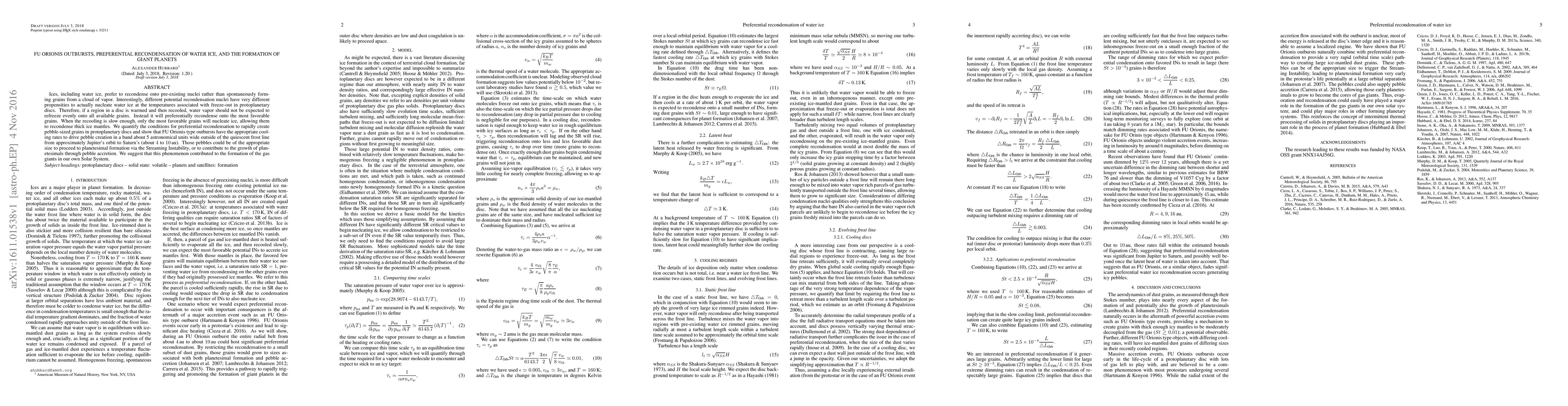 This paper investigates how FU Orionis outbursts can lead to the preferential recondensation of water ice in protoplanetary discs, creating pebble-sized grains that may contribute to the formation of giant planets. It concludes that these outbursts, with their specific cooling rates, facilitate the formation of such pebbles in a region from 4 to 10 astronomical units, potentially aiding in the development of gas giants.