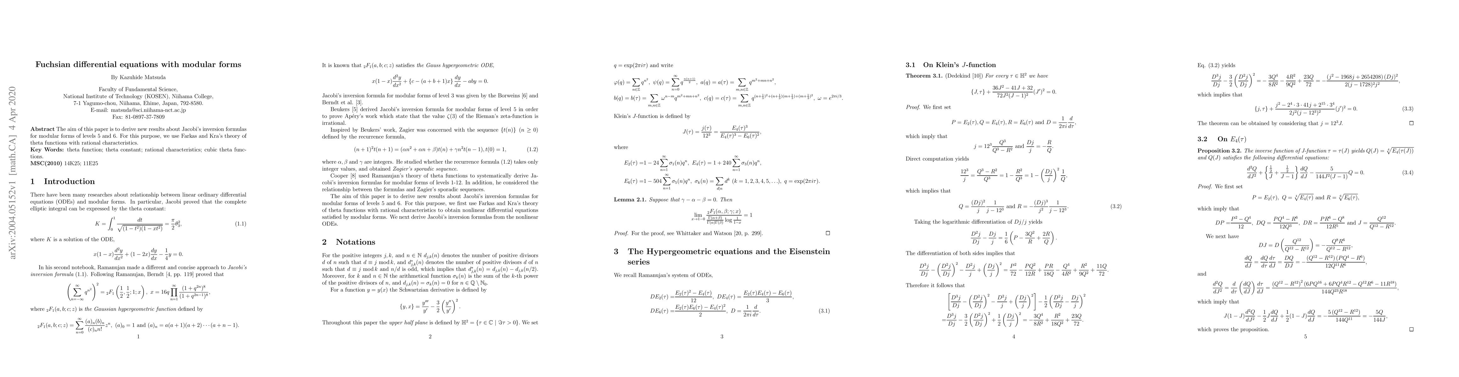 This paper derives new results for Jacobi's inversion formulas using Farkas and Kra's theory of theta functions with rational characteristics, focusing on modular forms of levels 5 and 6.