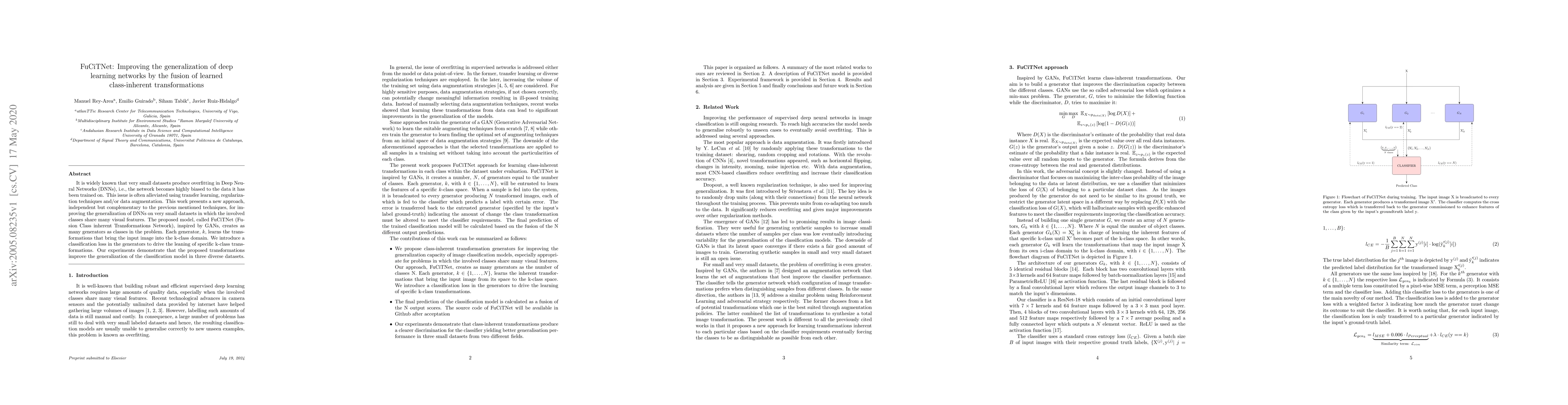 FuCiTNet introduces a novel approach to enhance the generalization of Deep Neural Networks on small datasets by learning class-specific transformations. This method, independent of transfer learning and data augmentation, shows improved performance across three diverse datasets.