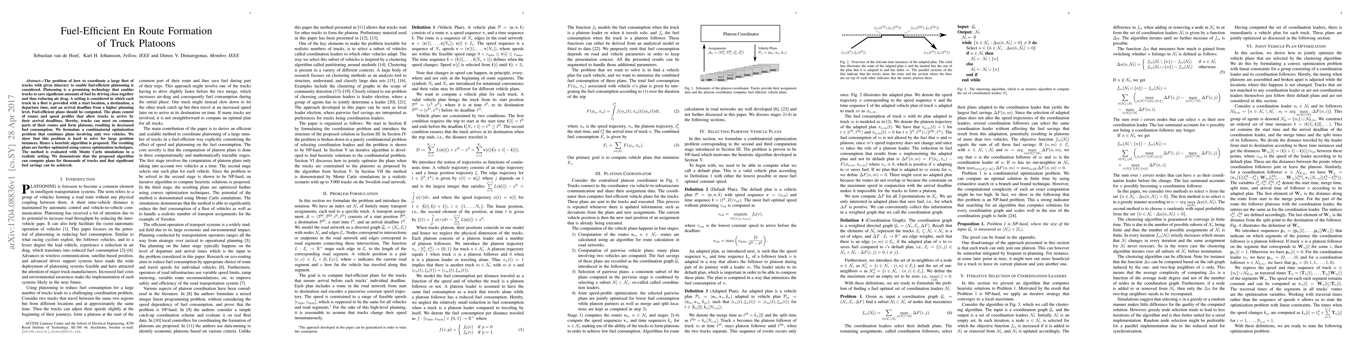 A study proposes a fuel-efficient algorithm for truck platoons to reduce fuel consumption, successfully computing plans for thousands of trucks with significant savings.