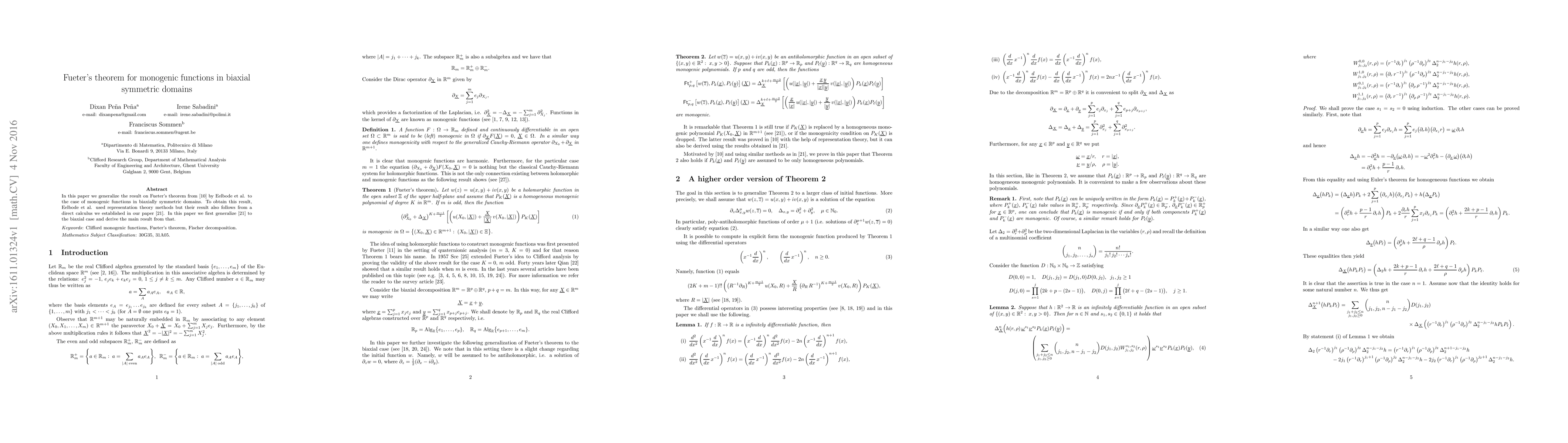 This paper extends Fueter's theorem to monogenic functions within biaxially symmetric domains, utilizing a direct calculus approach developed in the authors' previous work [21], rather than the representation theory methods used by Eelbode et al. [10].