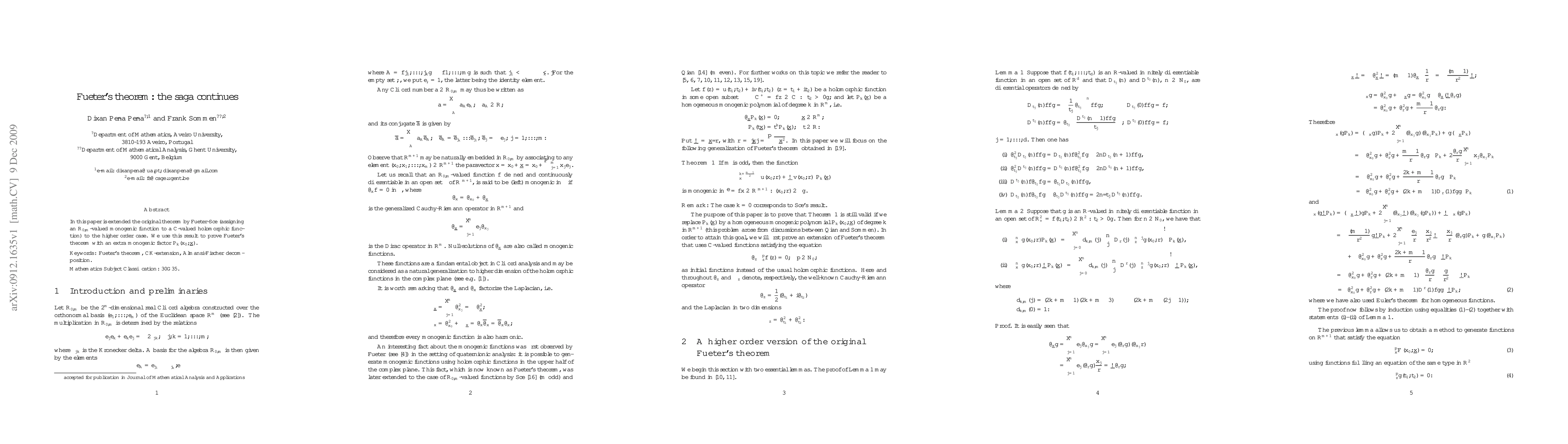 Summary: This paper extends Fueter's original theorem to higher order cases, assigning $\mathbb R_{0,m}$-valued monogenic functions to $\mathbb C$-valued holomorphic functions, and proves Fueter's theorem with an additional monogenic factor $P_k(x_0,\underline x)$.