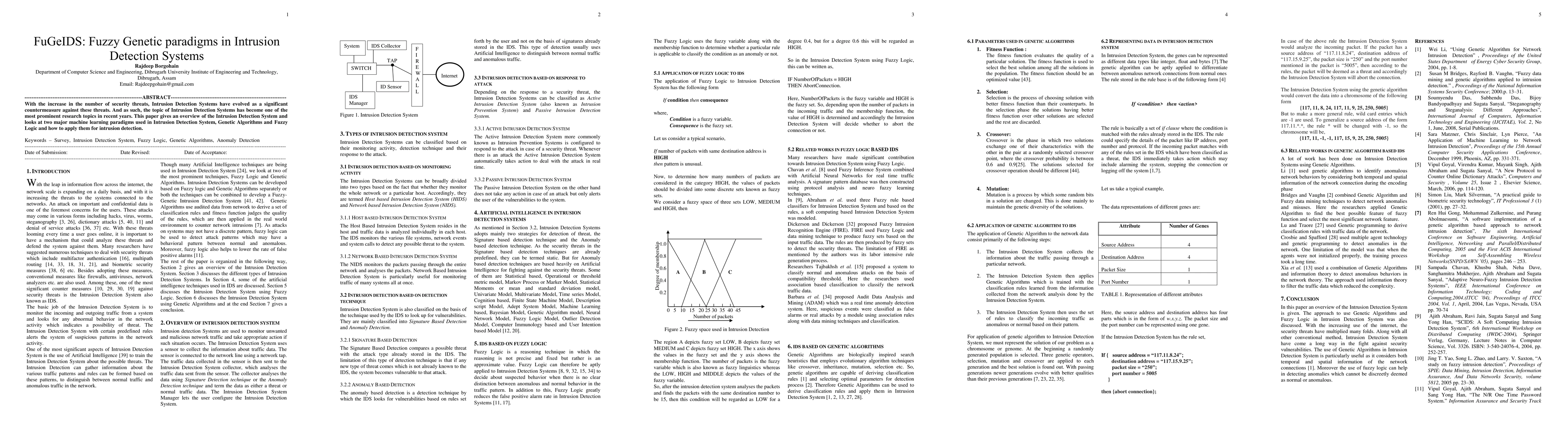 With the increase in the number of security threats, Intrusion Detection Systems have evolved as a significant countermeasure against these threats. And as such, the topic of Intrusion Detection Systems has become one of the most prominent research topics in recent years. This paper gives an overview of the Intrusion Detection System and looks at two major machine learning paradigms used in Intrusion Detection System, Genetic Algorithms and Fuzzy Logic and how to apply them for intrusion detection.