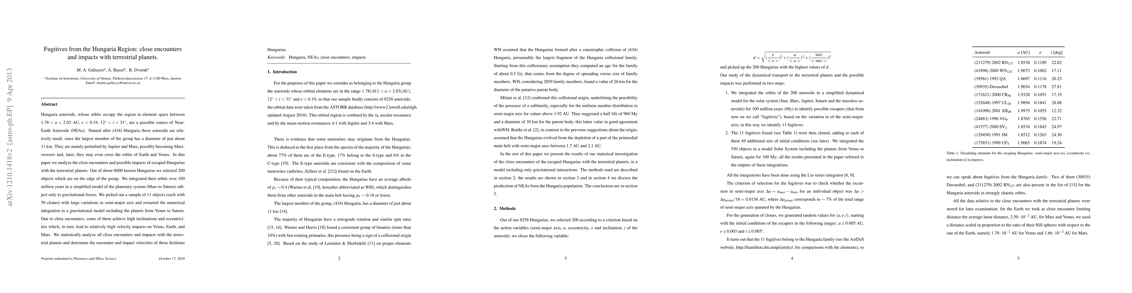 Hungaria asteroids, whose orbits occupy the region in element space between $1.78< a< 2.03$ AU, $e<0.19$, $12^\circ