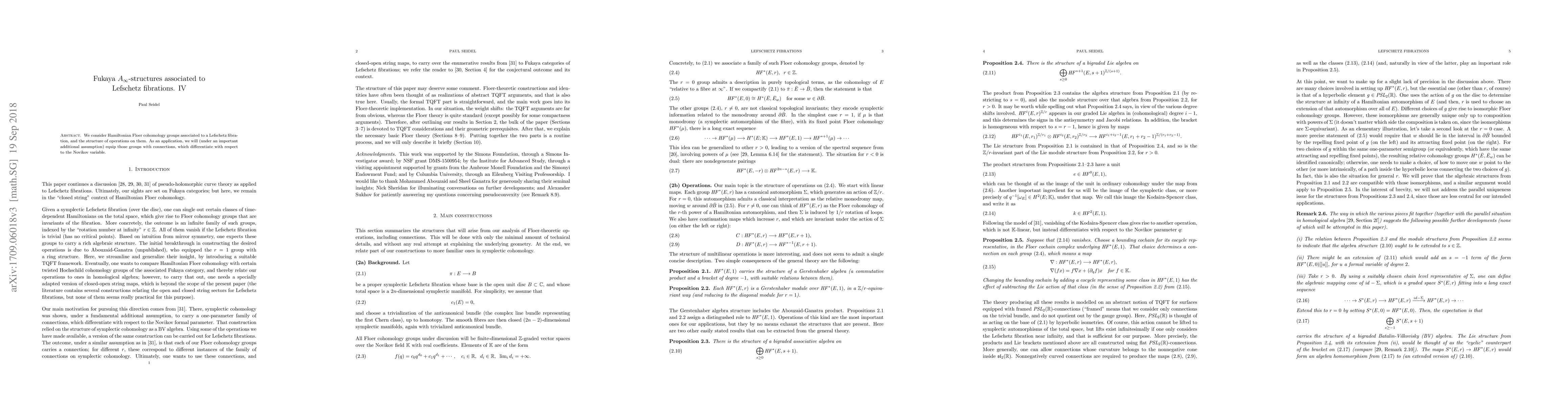We consider Hamiltonian Floer cohomology groups associated to a Lefschetz fibration, and the structure of operations on them. As an application, we will (under an important additional assumption) equip those groups with connections, which differentiate with respect to the Novikov variable.