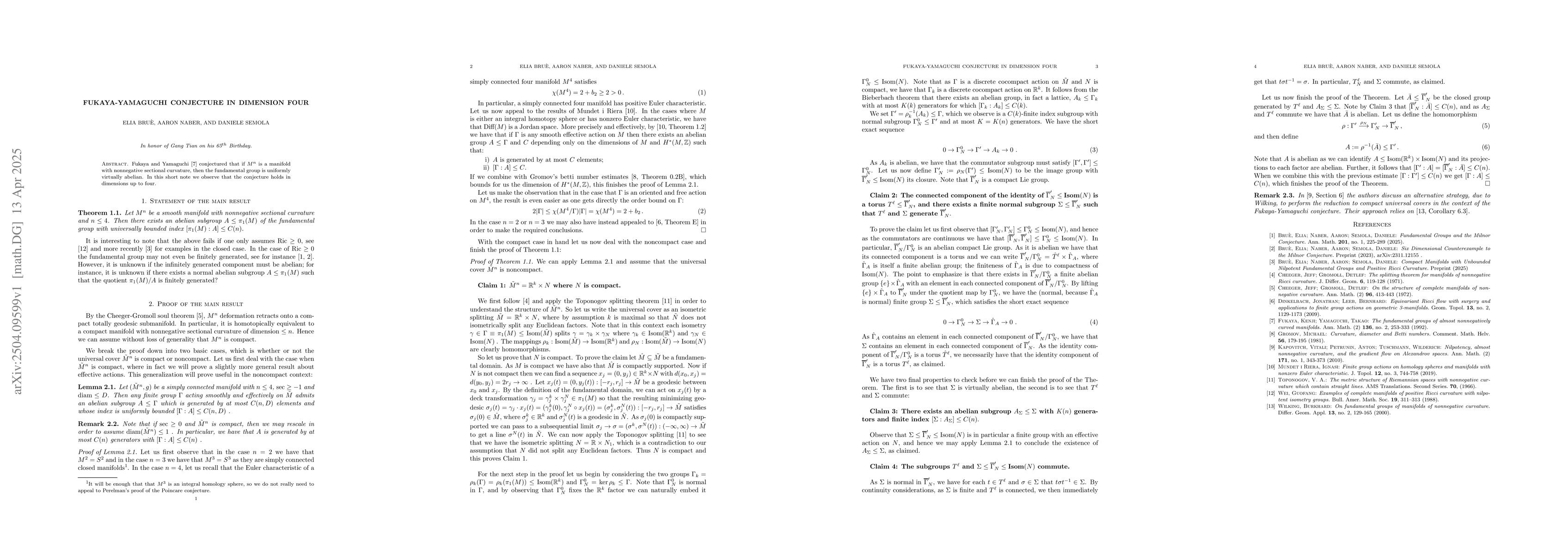 Fukaya and Yamaguchi conjectured that if $M^n$ is a manifold with nonnegative sectional curvature, then the fundamental group is uniformly virtually abelian. In this short note we observe that the conjecture holds in dimensions up to four.