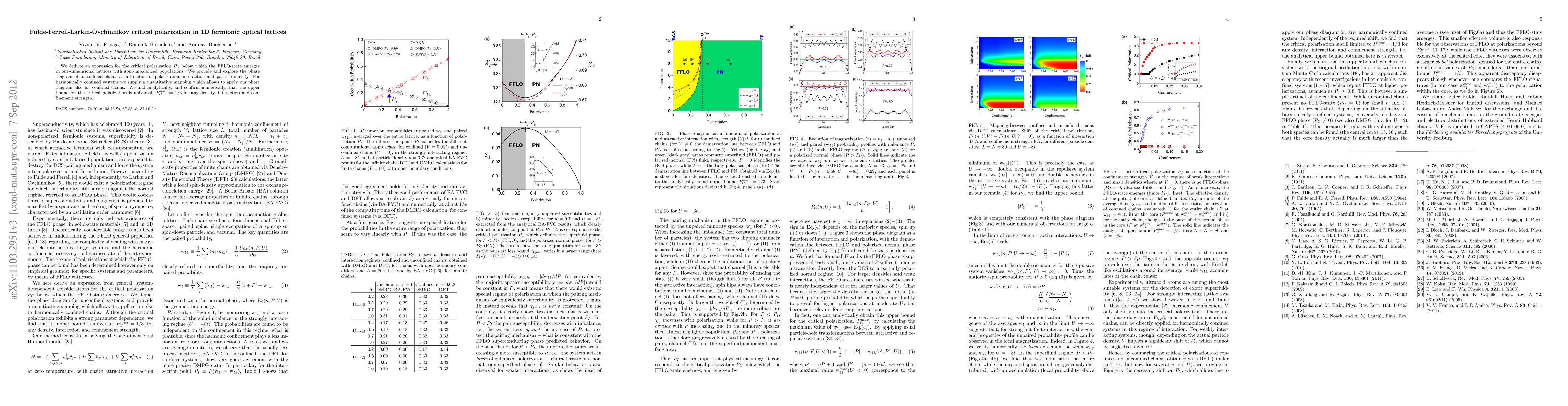 We deduce an expression for the critical polarization P_C below which the FFLO-state emerges in one-dimensional lattices with spin-imbalanced populations. We provide and explore the phase diagram of unconfined chains as a function of polarization, interaction and particle density. For harmonically confined systems we supply a quantitative mapping which allows to apply our phase diagram also for confined chains. We find analytically, and confirm numerically, that the upper bound for the critical polarization is universal: P_C^{max}=1/3 for any density, interaction and confinement strength.