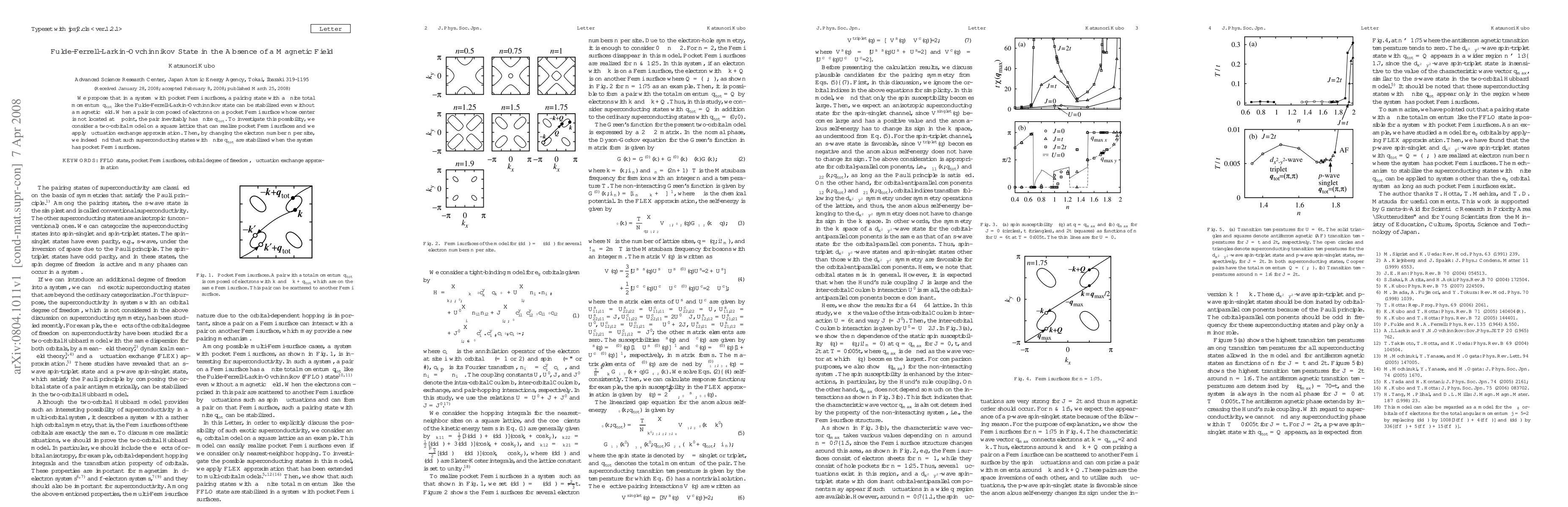 Researchers show that a type of superconducting state can exist without a magnetic field, even in systems with pocket Fermi surfaces. They found this state stable in certain conditions by studying a specific model on a square lattice.
