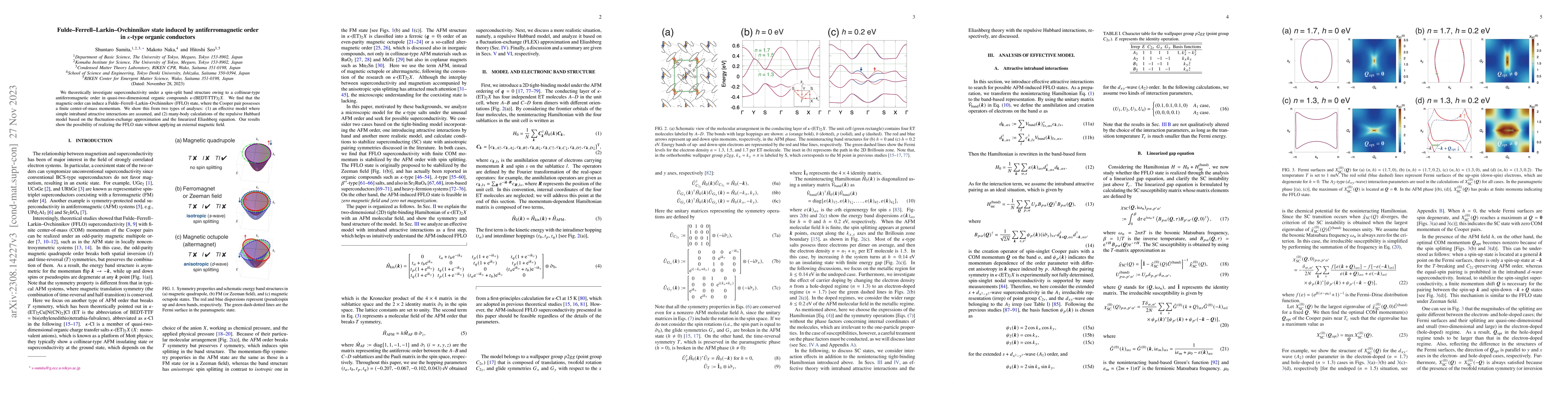 This paper investigates the emergence of a Fulde-Ferrell-Larkin-Ovchinnikov (FFLO) state in $\kappa$-type organic conductors driven by antiferromagnetic order, demonstrating this through effective model analysis and many-body calculations, suggesting the FFLO state can occur without an external magnetic field.