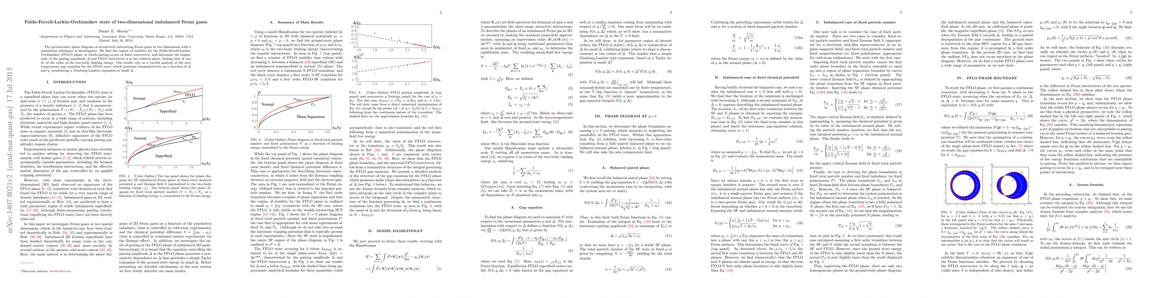 Summary: This study investigates the ground-state phase diagram of imbalanced two-dimensional Fermi gases, identifying the stability regime for the Fulde-Ferrell-Larkin-Ovchinnikov (FFLO) phase, where pairing occurs at a finite wave vector. The analysis reveals that the pairing amplitude $\Delta$ can approach the two-body binding energy magnitude, challenging conventional Ginzburg-Landau expansion methods.