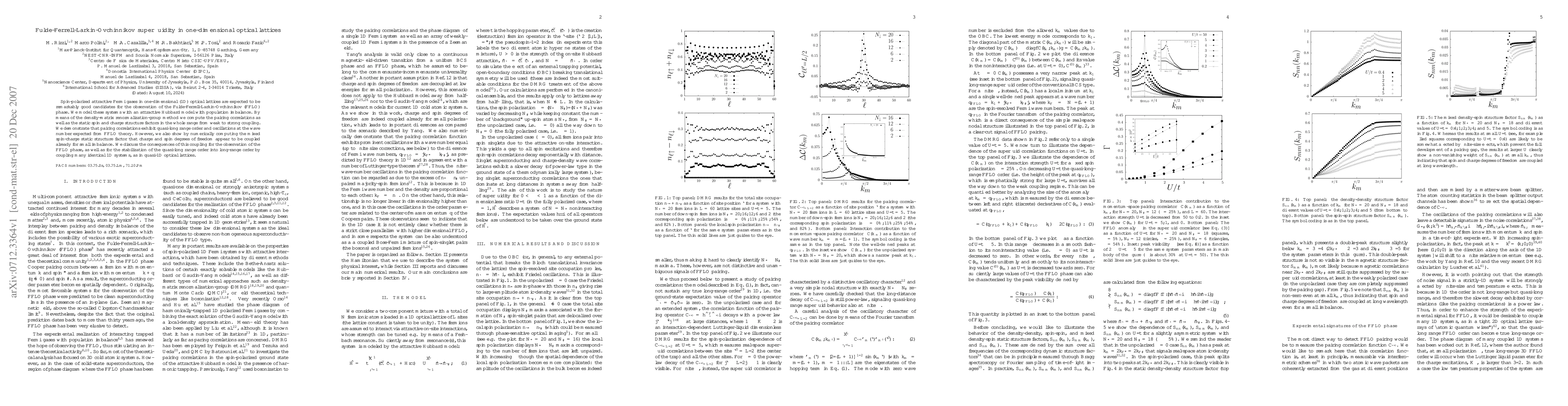 This paper investigates spin-polarized attractive Fermi gases in one-dimensional optical lattices, demonstrating quasi-long range order and oscillations in pairing correlations indicative of the Fulde-Ferrell-Larkin-Ovchinnikov (FFLO) phase. It finds that charge and spin degrees of freedom are coupled even at small imbalances, which impacts the observation and stabilization of the FFLO phase.