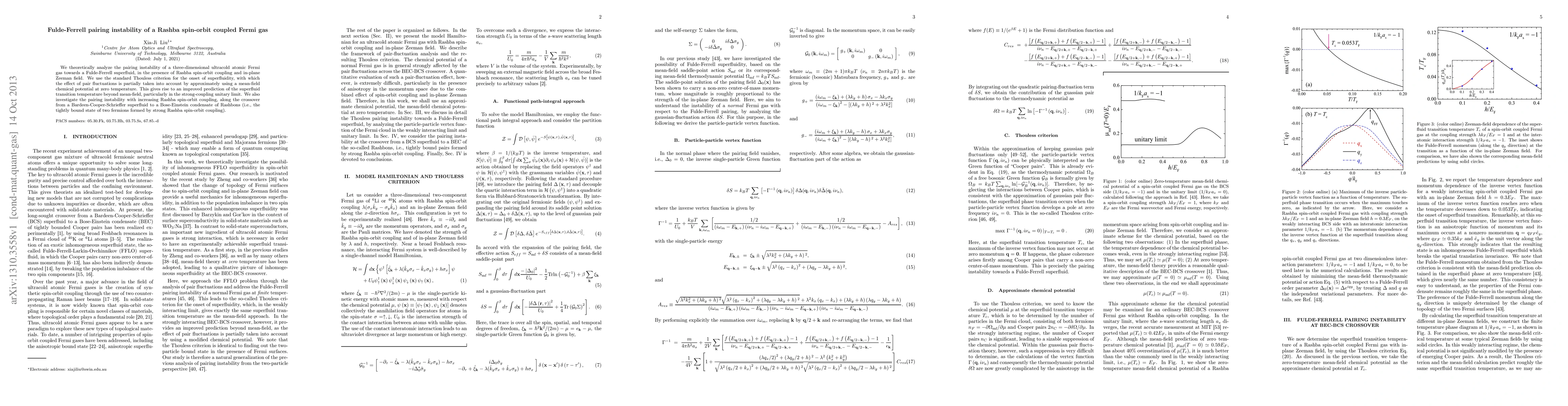 This paper analyzes the superfluid pairing instability in a three-dimensional ultracold Fermi gas under Rashba spin-orbit coupling and an in-plane Zeeman field, predicting a transition temperature beyond mean-field theory. It explores the crossover from BCS superfluidity to a Bose-Einstein condensate of Rashbons with increasing spin-orbit coupling.