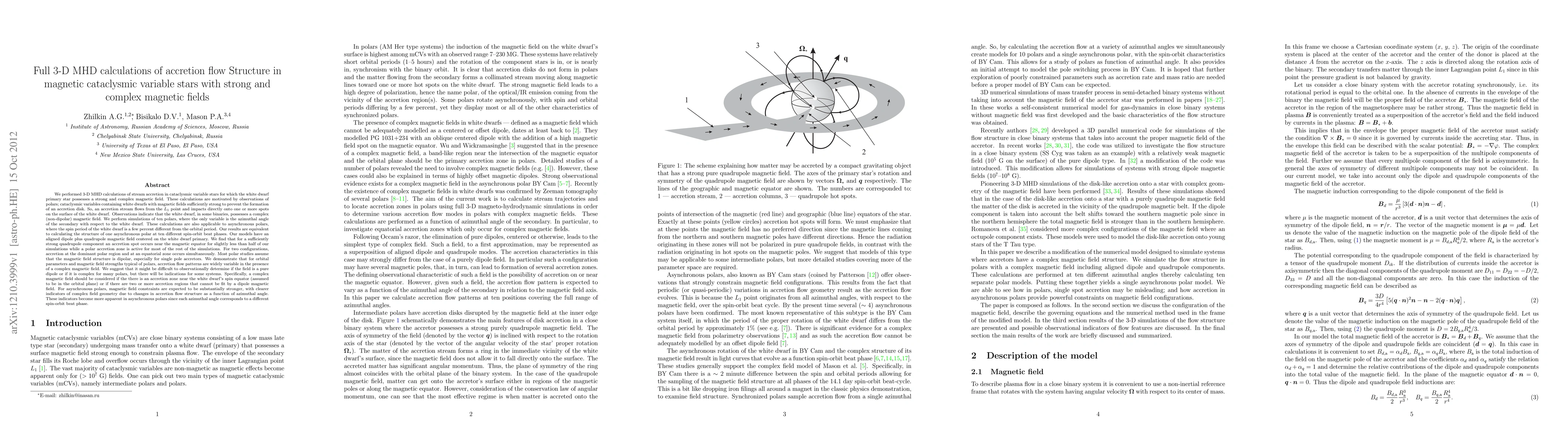 This paper presents 3D MHD simulations of accretion flows in magnetic cataclysmic variable stars with strong and complex magnetic fields, finding that accretion spots can form near the magnetic equator and that complex magnetic fields may be indicated by accretion zones near the spin equator or multiple accretion regions.