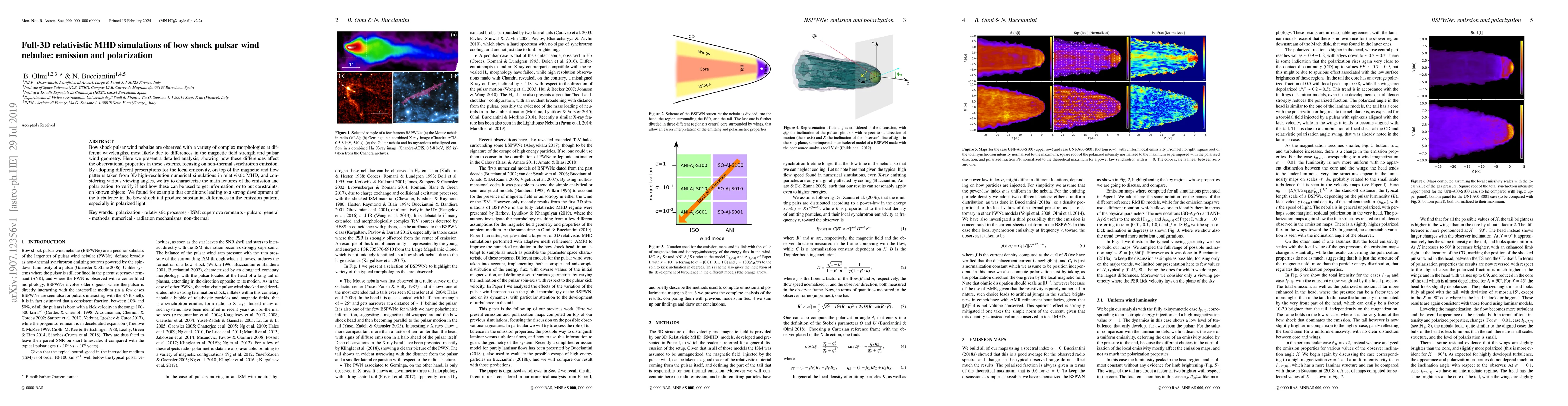 This paper presents full-3D relativistic MHD simulations of bow shock pulsar wind nebulae, analyzing how varying magnetic field strengths and pulsar wind geometries influence non-thermal synchrotron emission and polarization. The findings suggest that turbulence in the bow shock tail significantly alters emission patterns, especially in polarized light, providing insights into observational properties and constraints for known objects.