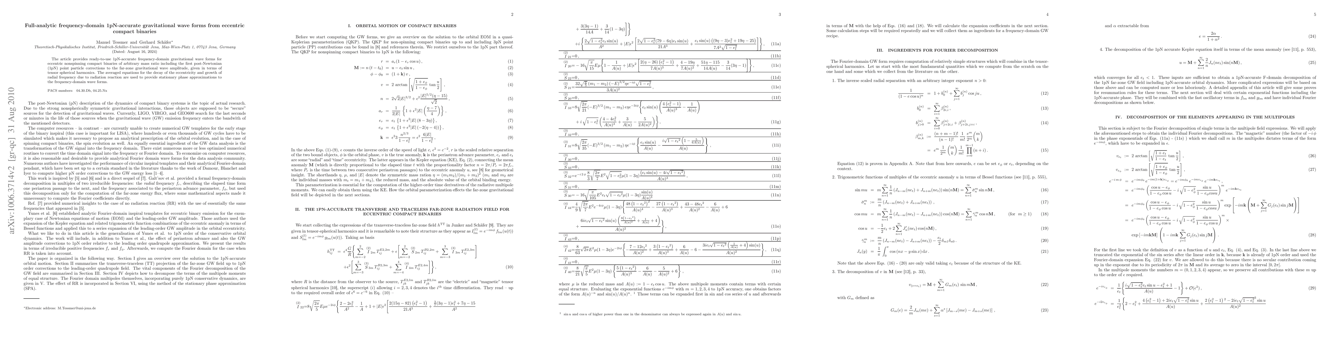 This paper presents highly accurate gravitational wave forms for eccentric compact binaries, incorporating first post-Newtonian corrections, and uses stationary phase approximations to model the evolution of eccentricity and radial frequency. These forms are available for use in gravitational wave detection and analysis.