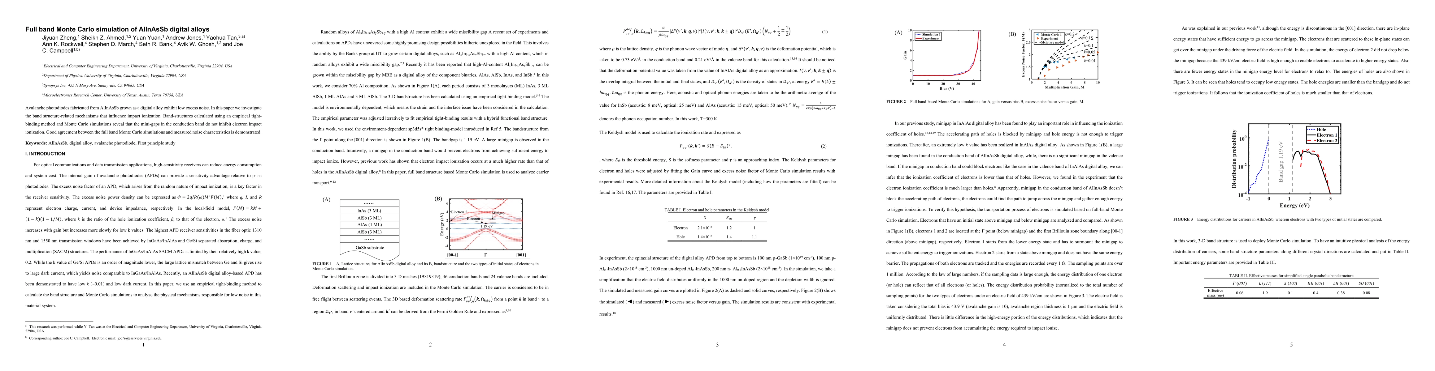 This paper investigates the band structure mechanisms influencing impact ionization in AlInAsSb digital alloy avalanche photodiodes, showing that mini-gaps in the conduction band do not inhibit ionization. Full band Monte Carlo simulations align well with measured noise characteristics, confirming their effectiveness.