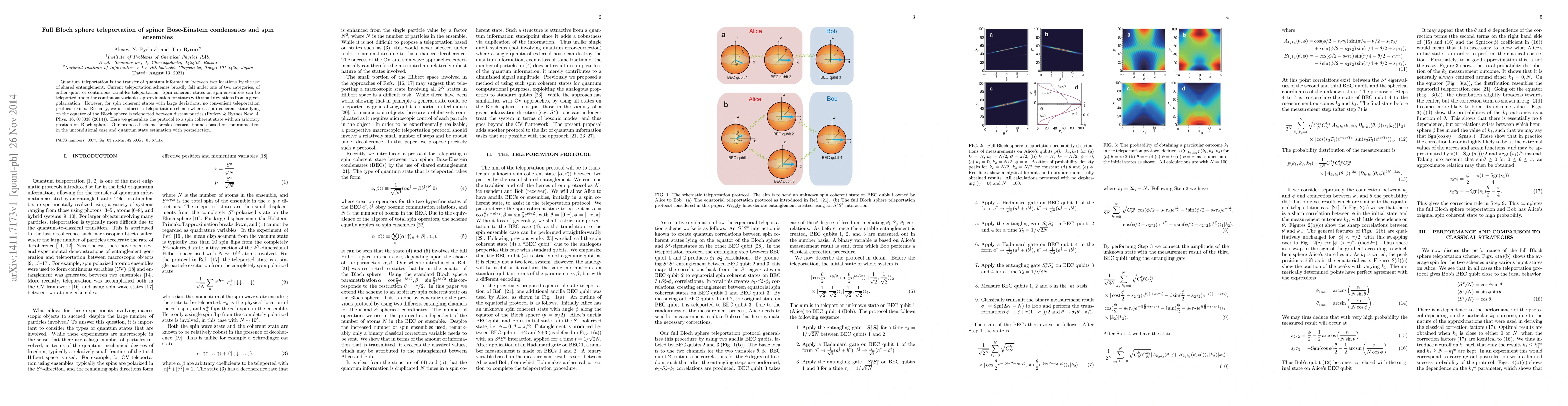 Quantum teleportation is the transfer of quantum information between two locations by the use of shared entanglement. Current teleportation schemes broadly fall under one of two categories, of either qubit or continuous variables teleportation. Spin coherent states on spin ensembles can be teleported under the continuous variables approximation for states with small deviations from a given polarization. However, for spin coherent states with large deviations, no convenient teleportation protocol exists. Recently, we introduced a teleportation scheme where a spin coherent state lying on the equator of the Bloch sphere is teleported between distant parties (A.N. Pyrkov and T. Byrnes, New. J. Phys. 16, 073038 (2014)). Here we generalize the protocol to a spin coherent state with an arbitrary position on Bloch sphere. Our proposed scheme breaks classical bounds based on communication in the unconditional case and quantum state estimation with postselection.