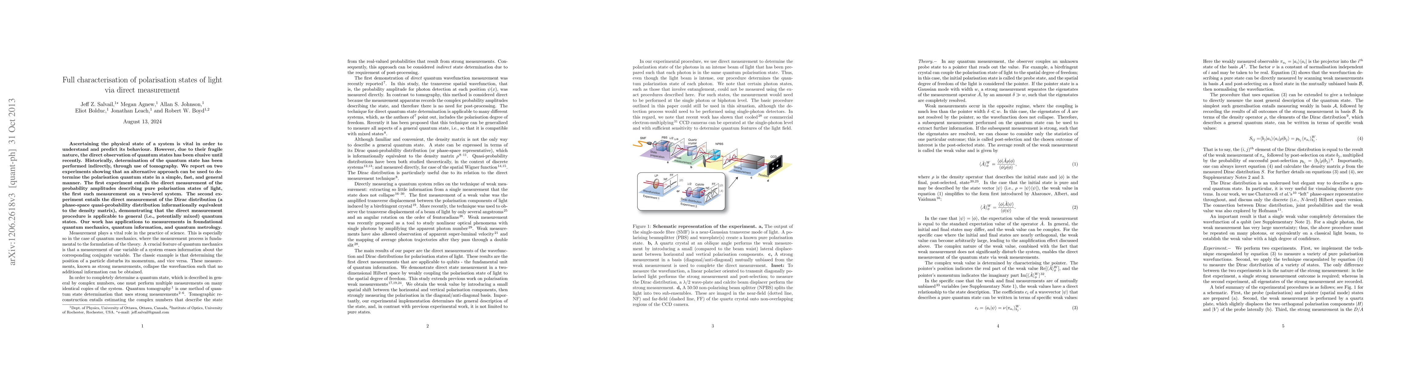 The paper introduces a novel method for directly measuring the probability amplitudes and Dirac distributions of polarisation states of light, bypassing the need for quantum tomography.
