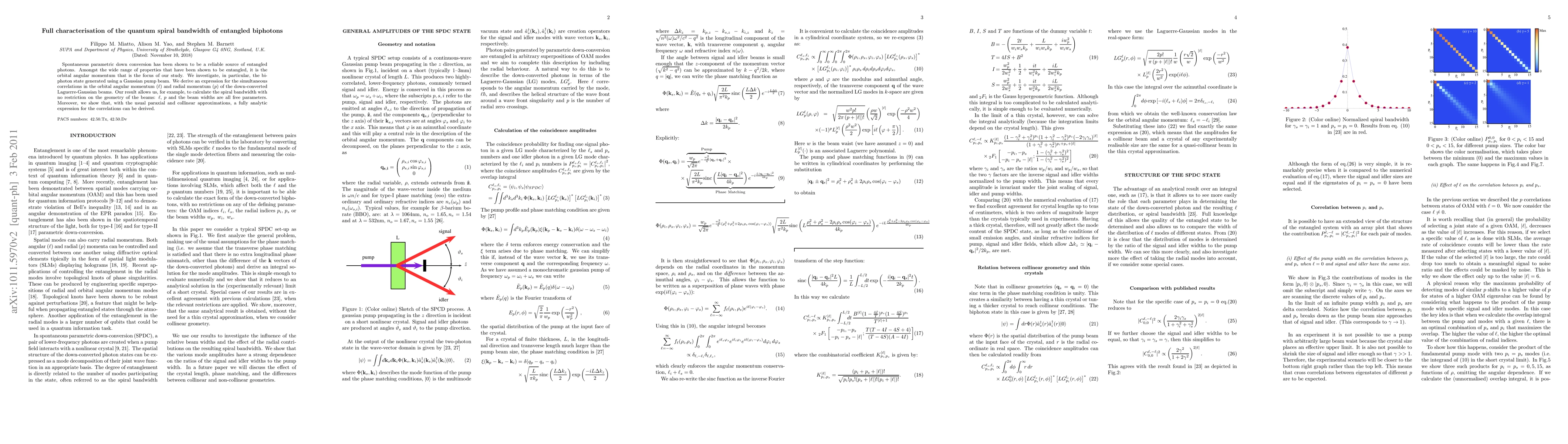 This paper characterizes the quantum spiral bandwidth of entangled biphotons generated by spontaneous parametric down conversion, focusing on the orbital angular momentum. The authors derive an expression for the simultaneous correlations in orbital and radial momentum, providing a fully analytic solution under paraxial and collinear approximations.