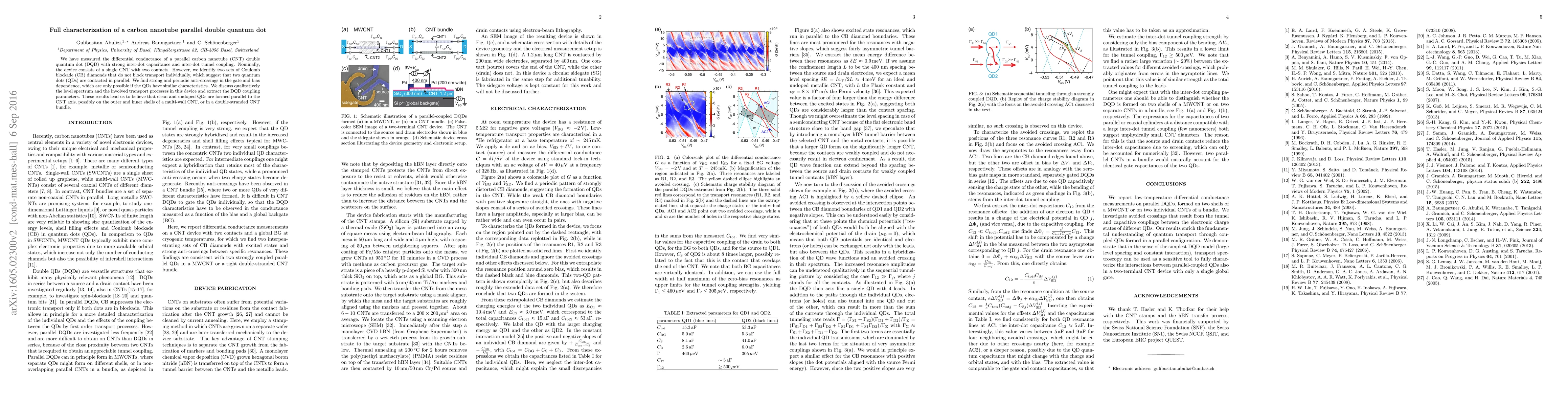 This research characterizes a carbon nanotube double quantum dot with strong inter-dot capacitance and coupling, revealing parallel quantum dot sets through Coulomb blockade observations and anti-crossings, suggesting formation in multi-wall CNTs or bundles. The study extracts coupling parameters and discusses the level spectrum and transport processes.