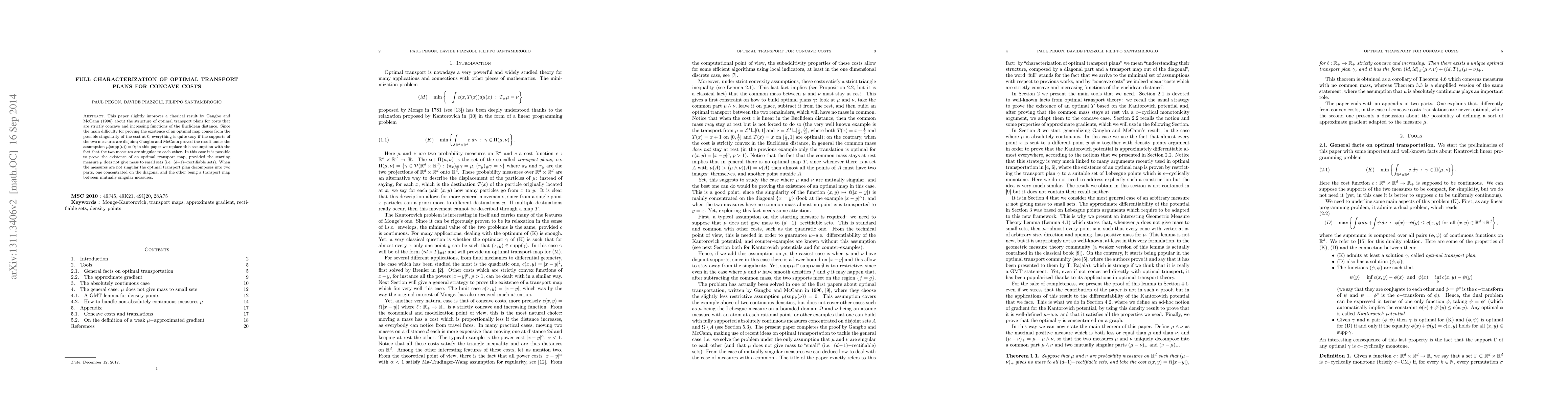 This paper refines the classical result by Gangbo and McCann on optimal transport plans for concave costs, proving the existence of an optimal transport map when the measures are singular, rather than requiring disjoint supports. The optimal transport plan consists of a diagonal part and a transport map between mutually singular measures when the measures are not singular.