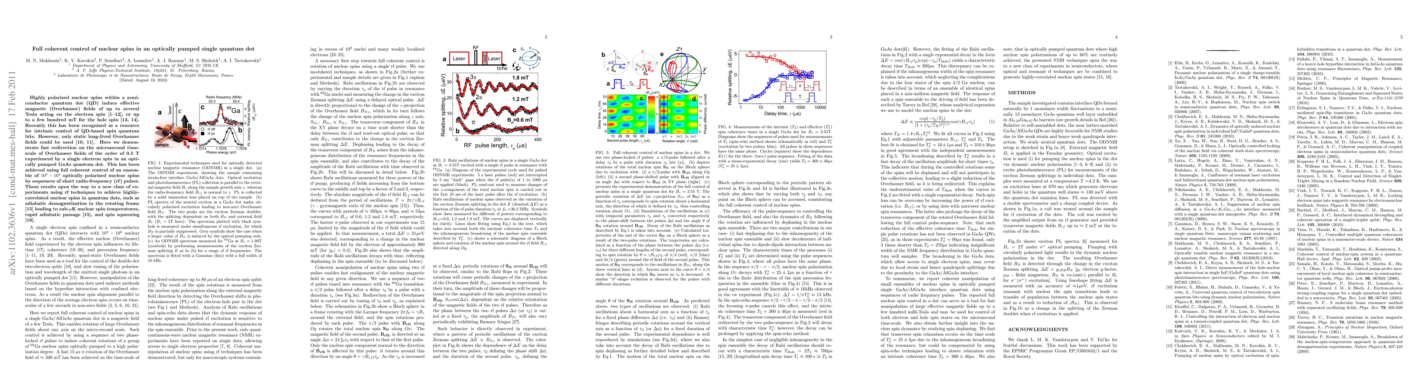 This paper demonstrates the full coherent control of nuclear spins in an optically pumped GaAs quantum dot using radio-frequency pulses, allowing for the fast redirection of Overhauser fields on a microsecond time scale. This breakthrough enables new quantum experiments, including sub-micro K nuclear spin temperatures and spin squeezing.